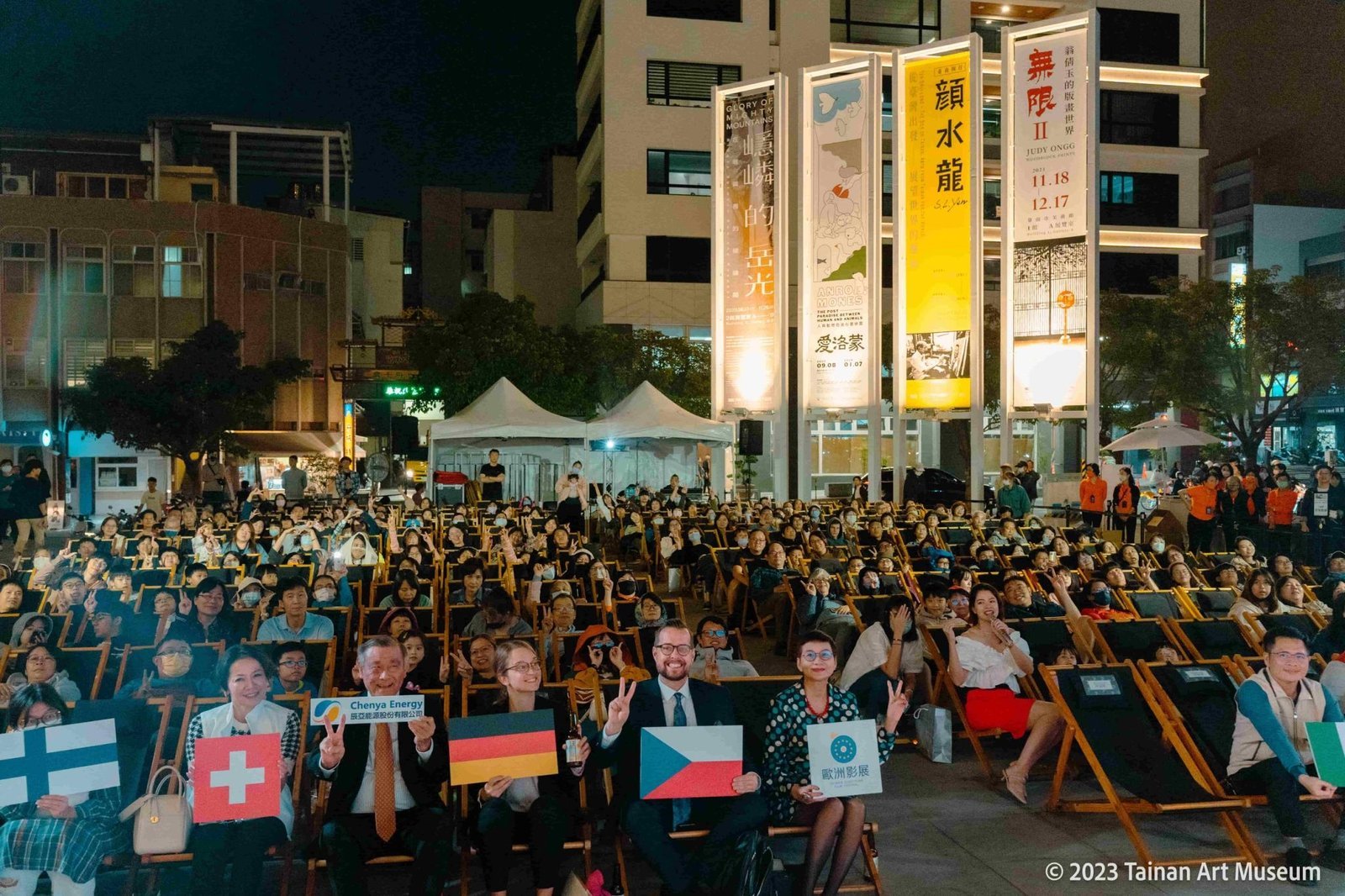 歐洲影展首映之夜開幕式於11月25日週六夜晚盛大舉辦,捷克經濟文化辦事處代表David Steinke、德國在台協會文化事務組副主任Nora Tech、觀旅局鄭道立專門委員、臺南市美術館館長林秋芳以及贊助單位辰亞能源股份有限公司董事長目賀田好弘等多位貴賓出席,從黃昏到夜晚以建築夜間光景作為電影布幕襯底,民眾或坐或臥在木質躺椅上,搭配精緻歐式餐點與臺南啤酒,使得看電影這件小事,特別有臺南味!