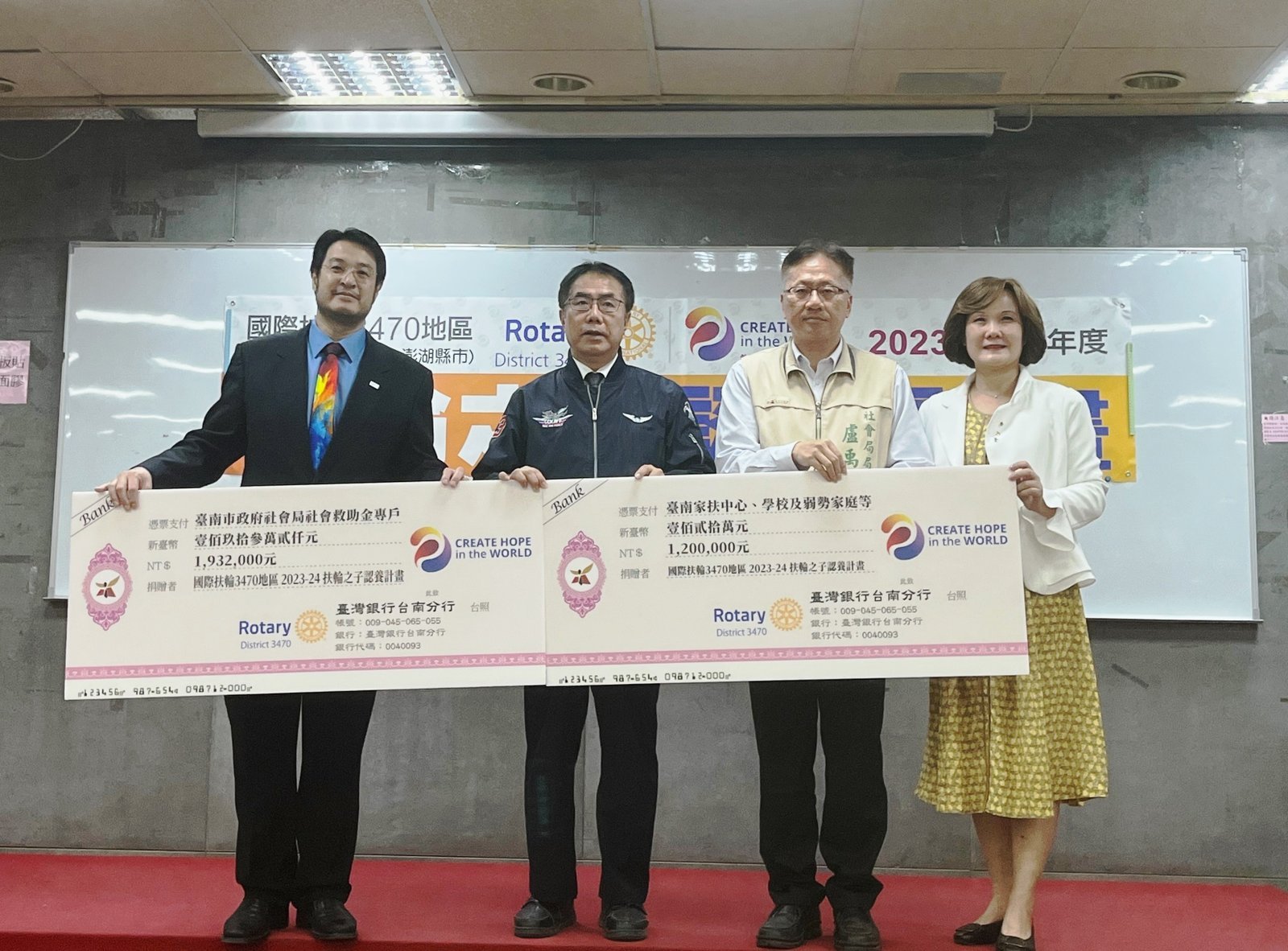 市長黃偉哲表示,有感學生的受教權無分性別、年齡、地域、社經地位及其他等條件,人人皆平等,市府積極媒合就學資源以協助弱勢家庭學子。此次感謝扶輪社總監所屬之台南東南社貼心規劃,並結合雲嘉南及澎湖等縣市共70社共同主辦「扶輪之子認養計劃」,該計劃的投入可幫助更多學子就學,也期望受扶助之學子,努力向學勇敢追求夢想。