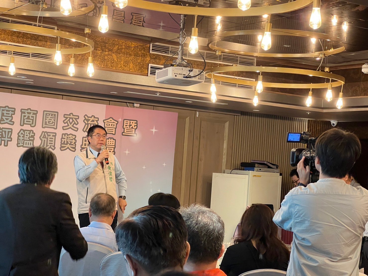 黃偉哲市長致詞後,特別鼓勵王伯群理事長:臺南市政府也屬於安平五期商圈範圍內,希望王伯群理事長繼續努力,為安平五期創造更好的發展。