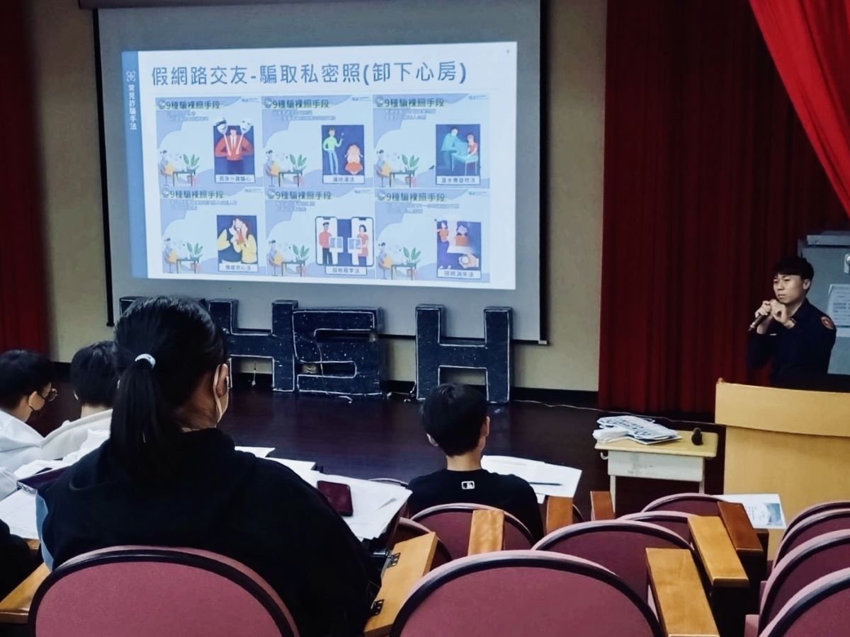 另解說現今詐騙手法,隨著網際網路普及,越來越多年輕人受騙,線上遊戲購買寶物、認識陌生網友或連結釣魚網站,遭詐騙集團誘使購買遊戲點數,提供序號或個人資料等,種種詐騙手法防不勝防,經驗不足的學生更易步入危險,內湖警實施入班反詐騙宣導,以現行常見六大詐騙類型手法「假網拍」、「假解除分期付款」、「假檢警」、「假投資」、「網路交友詐騙」、「猜猜我是誰」等教育學生識詐,深化反詐意識。