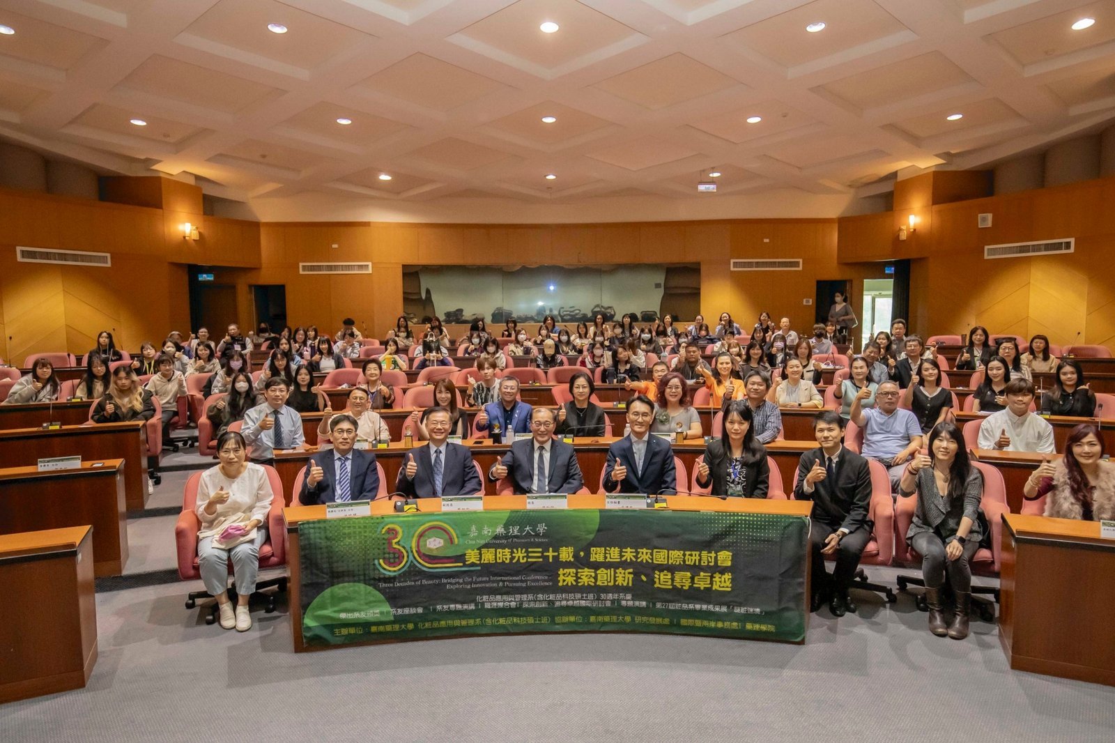 【透傳媒記者杜忠聰/臺南報導】創立於1993年的嘉南藥理大學化粧品應用與管理系為慶祝創系30週年,特別於12月13日起一連4天在校內國際會議中心,舉辦粧品美麗時光30載一系列系慶活動,慶祝活動涵蓋探索創新、追尋卓越國際研討會、首屆傑出系友頒獎、系友座談、專題演講、職涯媒合及第27屆畢業成果展「謎粧迷境」,邀請服務於製造業、服務業、學術界等各產業校友,回母校現身說法,分享現今產業趨勢新知與職涯發展經驗,現場熱鬧滾滾,跨世代的嘉藥粧品人齊聚一堂共同慶賀。