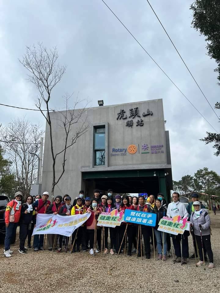 12月17日進行至桃園站,在強風特報、體感10度的低溫下參加者仍然踴躍出席,本次活動由桃園真醫健康企業有限公司與力愙運動中心聯合協辦,8:30分於虎頭山奧爾森林學堂集合,在協會智兼秘書長開場說明健走杖運動的好處與使用指導及桃園站崧丞站長帶領大家做足暖身運動後,一行人充滿新鮮感與期待的心情沿步道往虎頭山扶輪驛站出發,全程路長3.2公里。有了健走杖的輔助,參加者們都健步如飛、順利攀爬至扶輪驛站享用由協辦單位所提供的暖心熱湯和日本明治集團贊助的蛋白飲,在運動筋骨、鍛鍊體魄的同時也兼顧營養的攝取。