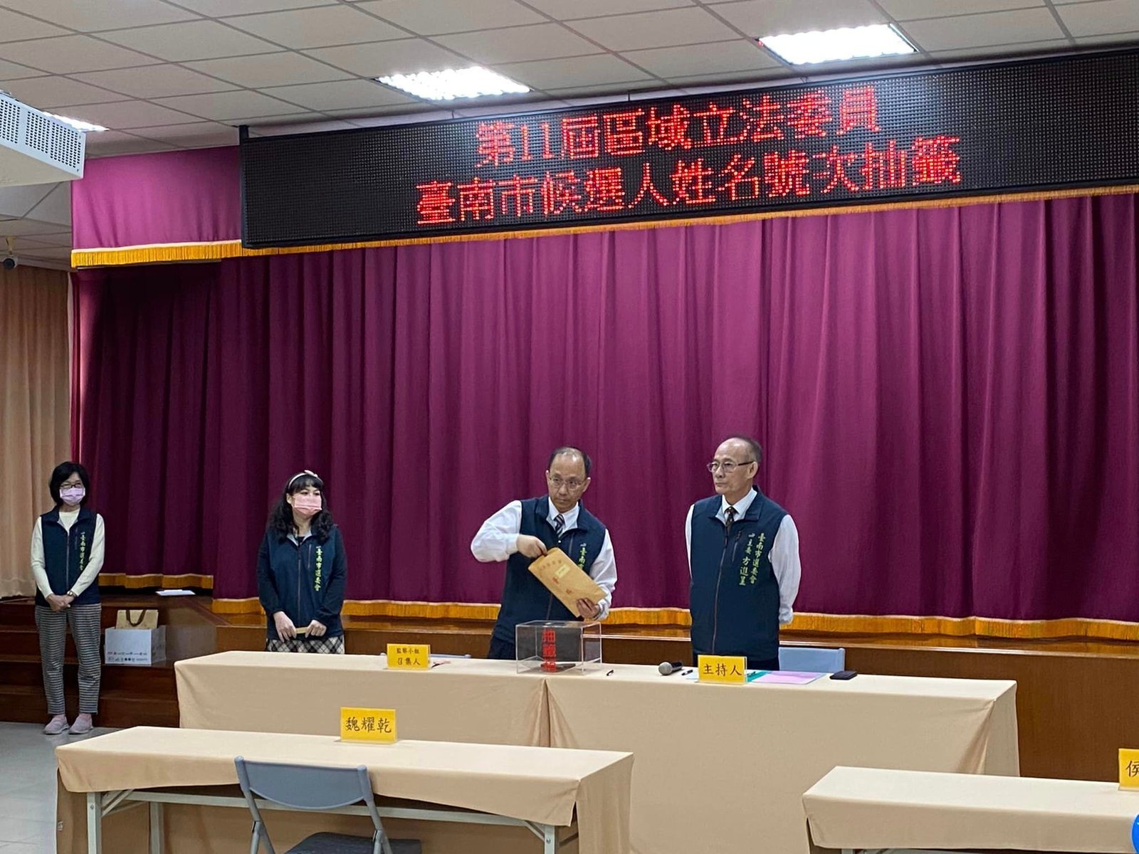 臺南市選舉委員會辦理第11屆區域立法委員選舉候選人姓名號次抽籤