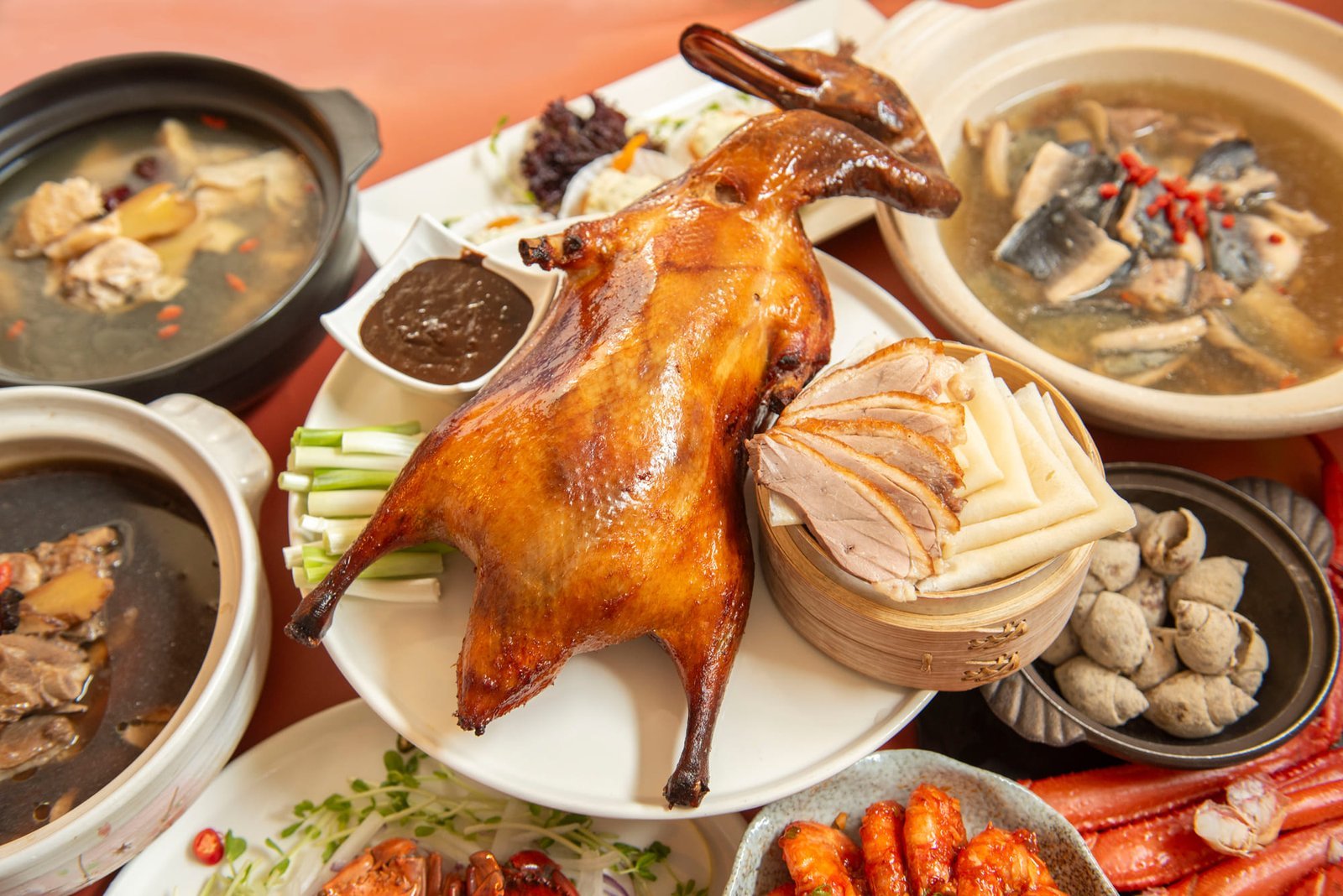 2023/12/30-2024/1/1跨年期間限定供應,以海鱸魚、珠貝、鮑魚、紅蟳等奢華海味烹飪,再透過廚師團隊多元的料理手法,製作上百道異國美饌,加上好評不斷的奢華鍋物『龍蝦鍋』、烤松葉蟹腳,與跨年限定的整隻現切北平烤鴨,讓您與朋友一起告別寒氣,迎接暖心的跨年時刻!