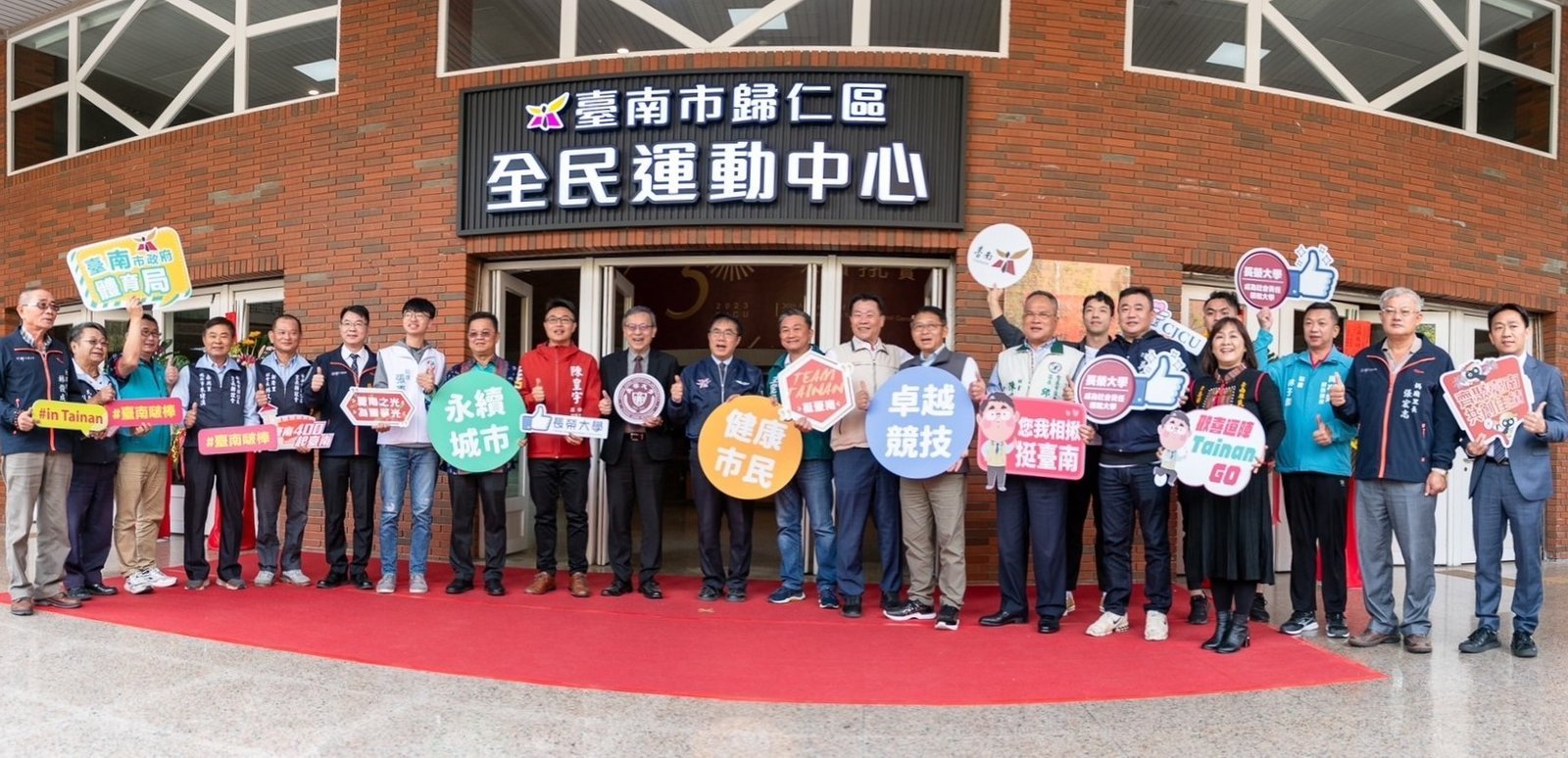 【透傳媒記者杜忠聰/臺南報導】為提供市民更多元優質的運動場館,臺南市政府與長榮大學合作,成立「歸仁全民運動中心」,臺南市長黃偉哲2日與長榮大學校長李泳龍揭牌啟用,黃偉哲感謝長榮大學師生全力配合在不影響校內學生使用的前提下,將校園場館資源開放與社區共享,將校園綜合體育館場館運動設施更優化,歸仁全民運動中心將成為新豐地區民眾的主流運動基地。黃偉哲市長強調,長榮大學匯集三高(中山高、南二高、86快速道路)、雙鐵(高鐵、台鐵)交通暢達,鼓勵臺南各區民眾利用時間,就近享受優質平價的運動健身場館。
