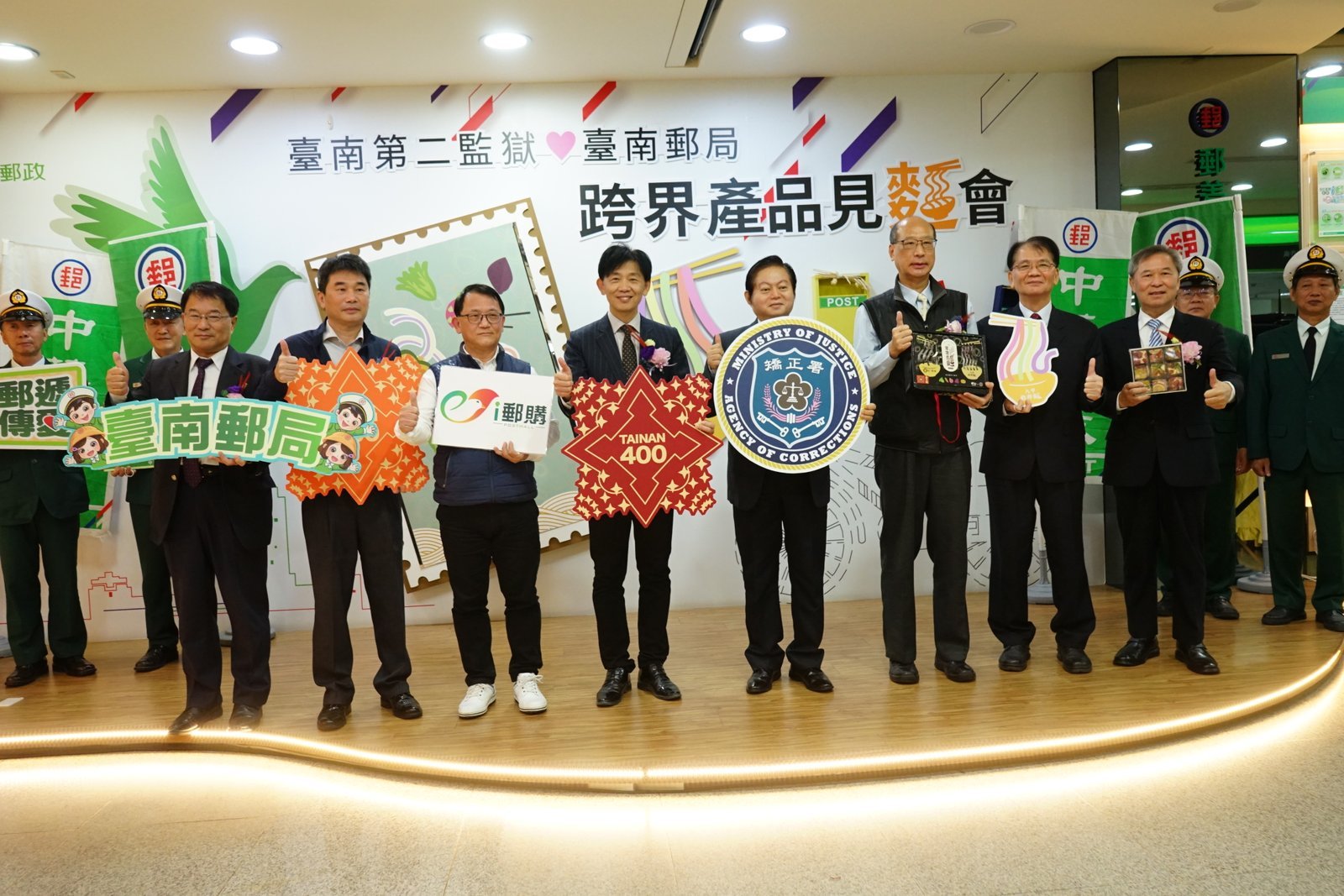 【透傳媒記者朱靜芳/臺南報導】臺南郵局與臺南第二監獄「強強聯手!跨界產品見麵會」於5日在臺南郵局盛大登場!共同推出優質的「常常見麵」乾拌麵、「果菓派對」果乾雪Q餅禮盒,跨領域機關首度攜手,結合郵局的i郵購商城、智慧物流i郵箱與矯正機關一貫優質的產品,1加1大於2,激盪出跨界合作全新火花!