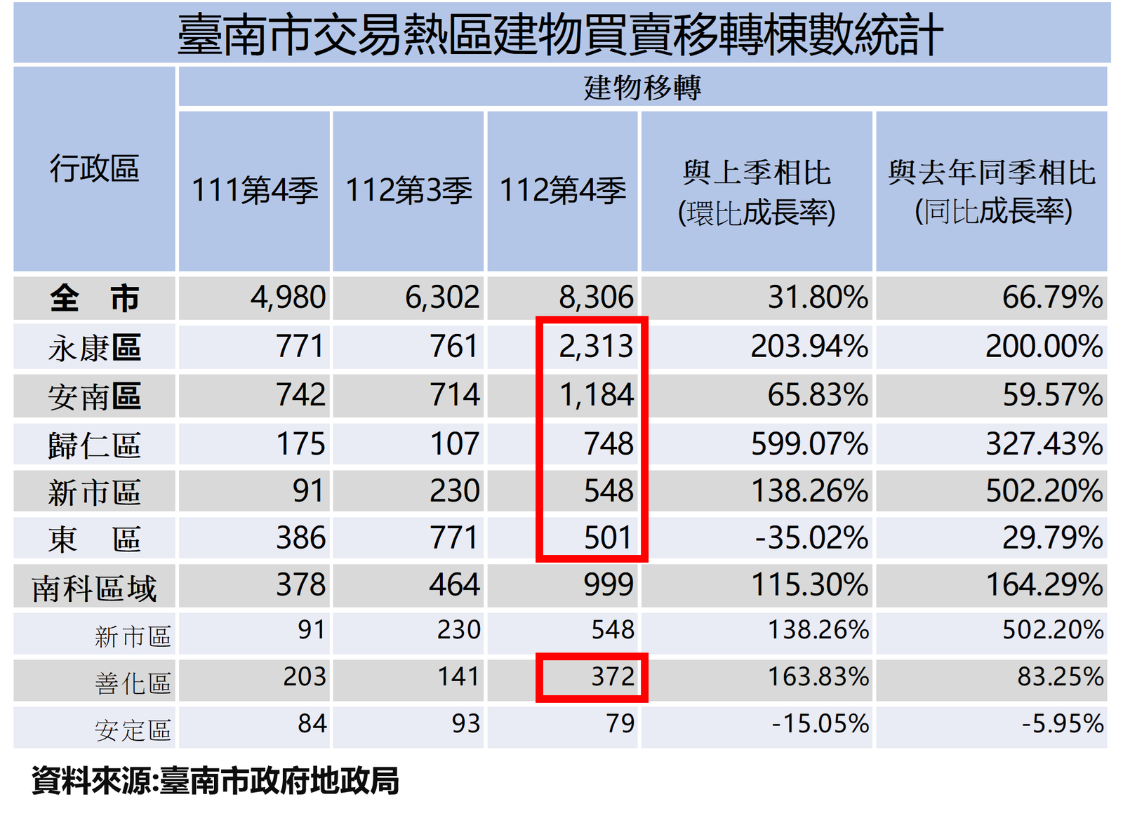 南市112年第4季土地及建物交易量俱成長 拒絕投機歡迎投資大臺南