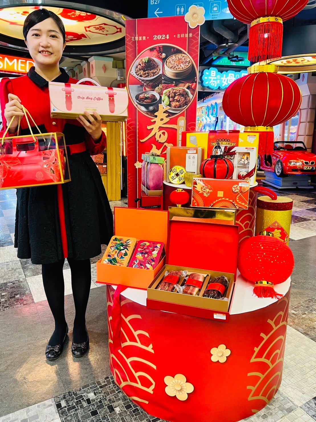 魚香涎伴手之禮,來自嘉義的養殖烏魚子,由臺灣烏魚子工廠一條龍培育,以益生菌養出好品質;每日檢驗生菌數,並取得ISO及HACCP品質認證。內含:琥珀一口烏3包、烏金高粱香腸1包5條/3包1組。建議售價NTD2,520、特價NTD2,099,冷凍可保存1年。遠東百貨獨家臺北遠東香格里拉長參禮盒,禮盒顏色採用艷麗的牡丹紅,精巧的雙層抽屜更顯雍容華貴,內含:琥珀糖核桃、許氏花旗參乙罐、廣式臘腸。建議售價NTD2,388。花旗參常溫可保存3年、臘腸常溫可保存6個月。香港半島酒店新春糖果盒,農曆新年系列以神話巨龍的氣韻為靈感,向傳統的舞龍致敬。糖果盒裡充滿特色的吉祥糖果與賀年零食,祝願親友在龍年有甜蜜的開始。內容物包括:茉莉奶油餅乾3入、鐵觀音奶油餅乾3入、黑巧克力片3入、黑巧克力片(可可豆)3入、黑巧克力片(牛軋糖)6入、花生脆糖12入、什錦迷你水果糖45入、薄荷糖15入。建議售價NTD2,800,常溫可保存100天。