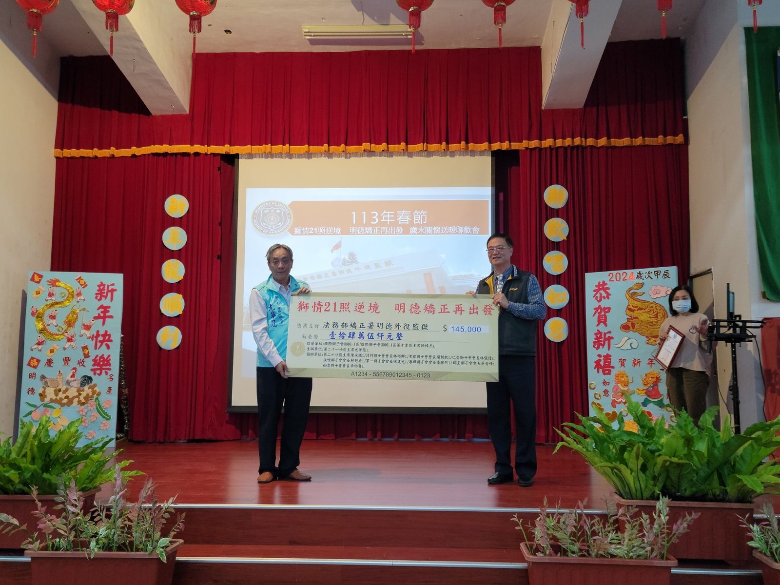 【透傳媒記者杜忠聰/臺南報導】「歲末寒冬凍,天冷人心暖」,龍年伊始,一群熱心社會公益的國際獅子會300E-1區第10專區第21及第20分區的獅友們,特別選在農曆年前於26日蒞臨位處台南市山上區的明德外役監獄,關懷服刑中的受刑人,並與獄方共同辦理「收容人歲末關懷送暖春節聯歡會暨歌唱比賽」,透過寓教於樂的教化關懷,鼓勵收容人積極向善。獅友們也利用此次拜訪的機會,同時慰勞默默堅守崗位的矯正工作同仁終年的辛勞。