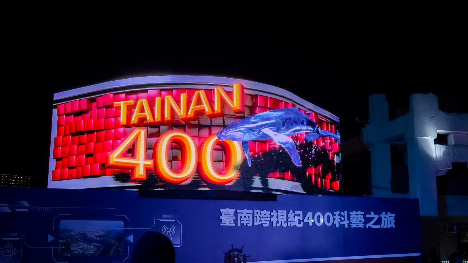 黃偉哲市長表示,今年適逢臺南400,規劃全年度系列活動,由結合智慧科技與在地人文特色的「臺南跨視紀400科藝之旅」打頭陣,自開幕以來廣受民眾好評,尤其是「AR發現鯨奇」讓民眾觀賞大鯨魚在城市悠遊,捕捉空中鯨魚也成了另類的趣味活動,大人小孩都大呼驚奇有趣!距離「臺南跨視紀400科藝之旅」結束還剩10天,呼籲民眾把握時間體驗五大亮點內容。