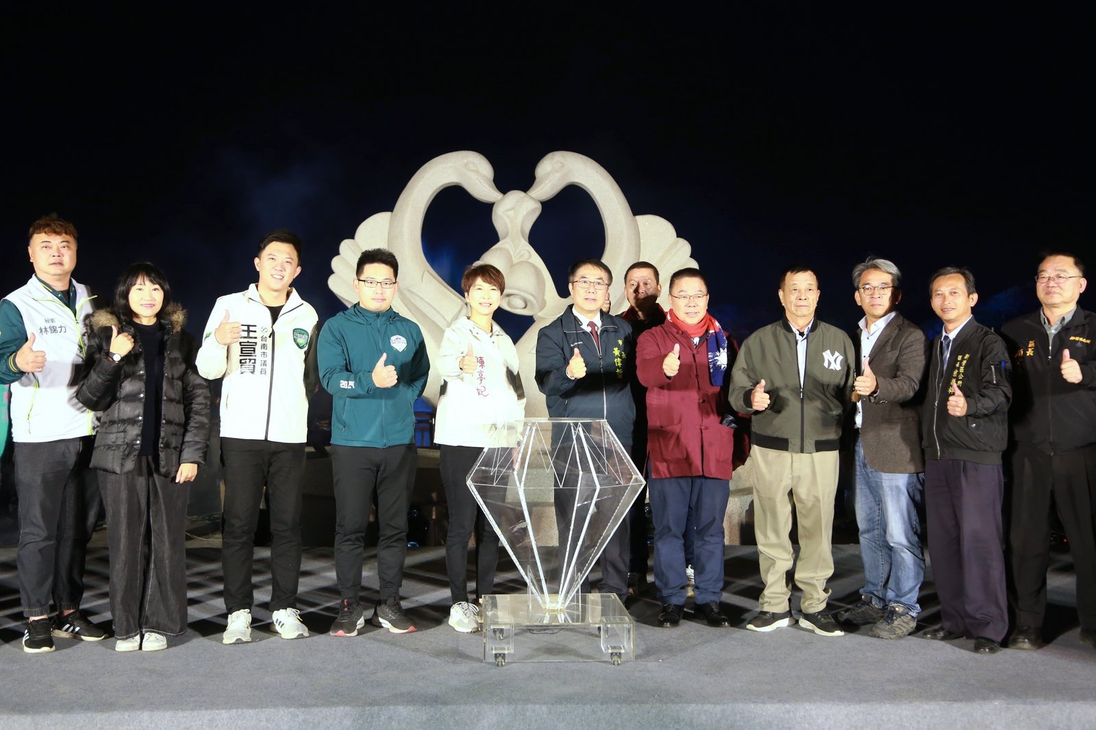 【透傳媒記者杜忠聰/臺南報導】台南藝文新品牌華麗登場!首屆「新營波光節」今(28)日開幕,台南市長黃偉哲與立法委員陳亭妃,以及市議員蔡育輝、李宗翰、趙昆原、王宣貿等各界貴賓一起為活動啟燈,讓天鵝湖的美景錦上添花,增添一抹新的光彩。