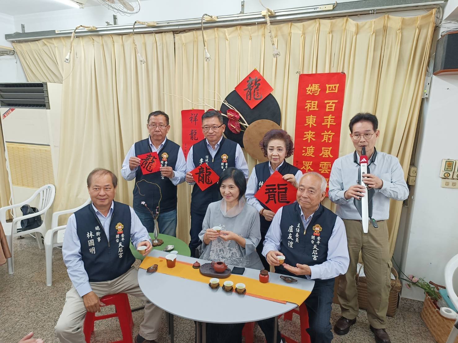 天后宮總幹事林國明表示,廟方從2月4日開始有系列活動,當天上午在廟埕辦理「龍茗騰墨」揮毫贈春聯活動,由書法協會理事長鄭有懋、盧柏榕老師暨8位書法老師,現場揮春,同時邀請江昭慧茶藝老師(寬韵茶藝文)帶領6位茶藝老師現場進行茶藝表演,提供蜜香烏龍茶與民眾共享(廟方贈送前200名參與活動者一只品茗杯)。當日下午下午13:00~ 17:00,現場三鯤鯓社的天宮壇副主委朱建國表演薩克斯風、拓譜吉他樂團劉建志吉他表演,展現廟埕樂音飄飄文風吹拂的喜氣氛圍。