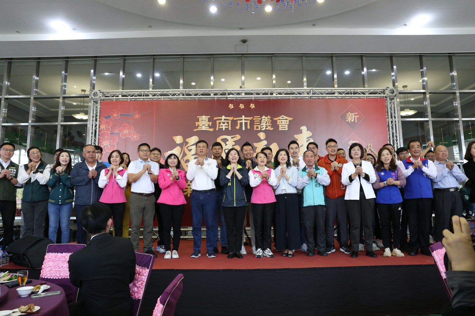 【透傳媒記者杜忠聰/臺南報導】農曆新年即將到來,臺南市議會1日於議會大廳舉行「福運龍來聯誼餐會」,邀請議員、議員助理、市府局處首長、府會連絡人及本會員工等齊歡聚,感謝大家過去一年對議會各項事務的協助。邱莉莉議長、林志展副議長及在場議員同台舉杯,向大家拜年,黃偉哲市長也特別到場致意。