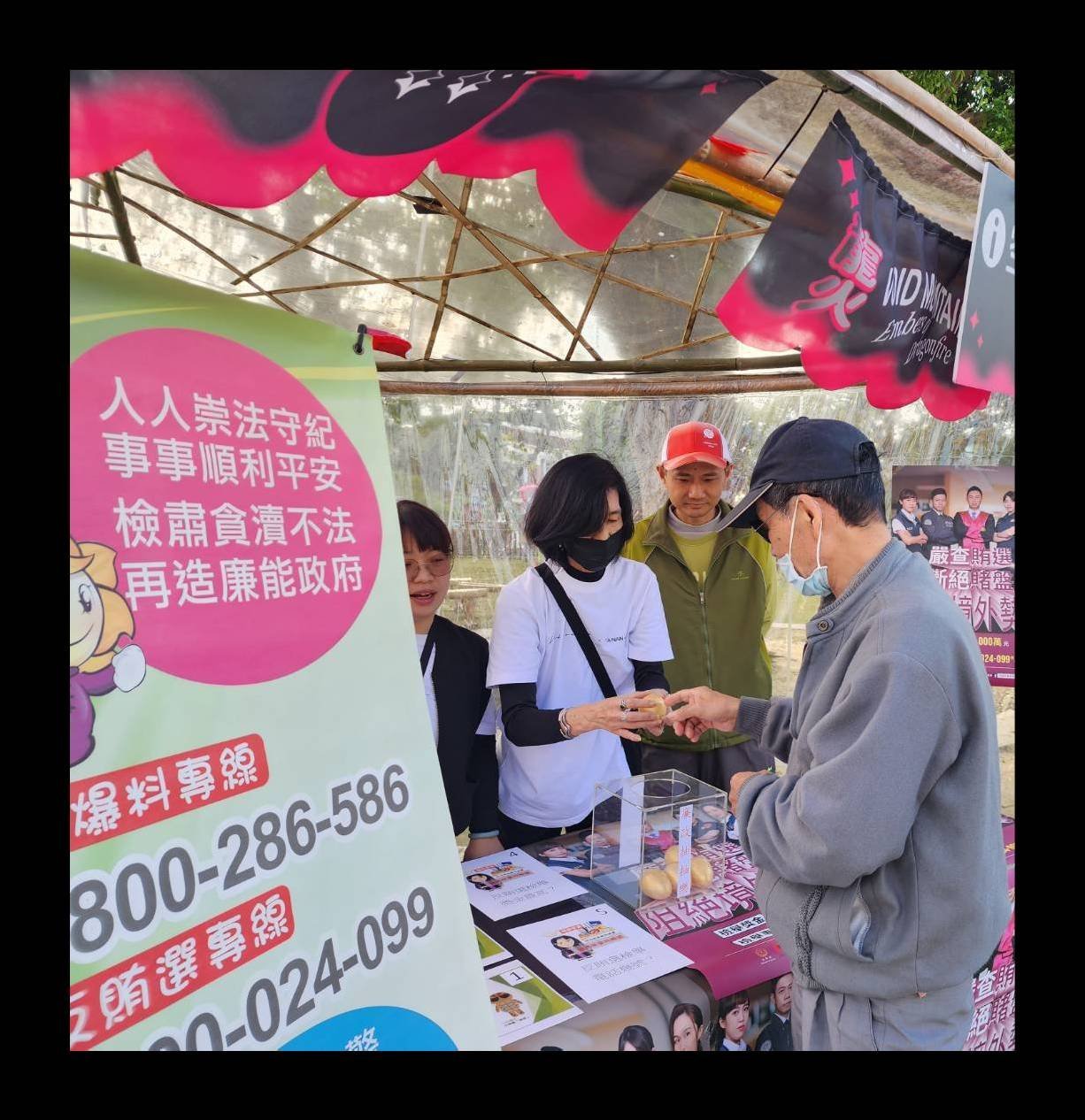 【透傳媒記者杜忠聰/臺南報導】臺南市政府文化局政風室於113年春節期間,結合該局主辦之2024台南龍崎光節「空山祭」活動,設置廉政攤位,以「廉手出擊-龍來反貪」有獎徵答遊戲與民眾互動,辦理社會參與反貪宣導活動,現場除發送廉政政策及法令宣導資料外,以「反貪金蛋」廉政遊戲與求才民眾同樂,並贈送廉政宣導小獎品,參與民眾反應熱烈。