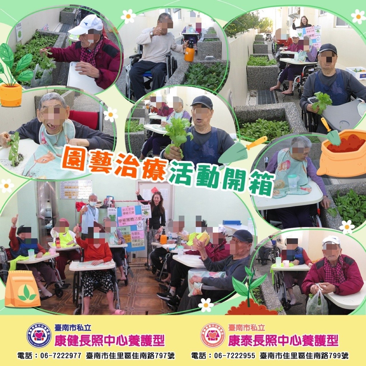 【透傳媒記者杜忠聰/臺南報導】農曆春節過後,氣候漸趨暖和,萬物生長一片欣欣向榮。樂活集團旗下的康健康泰老人長期照顧中心配合時令,在社工的帶領下,進行園藝治療,讓長輩都認養一塊小小園地,耕種個人喜愛的植物,達到怡情養性的目的,也重拾收穫成果的成就感。