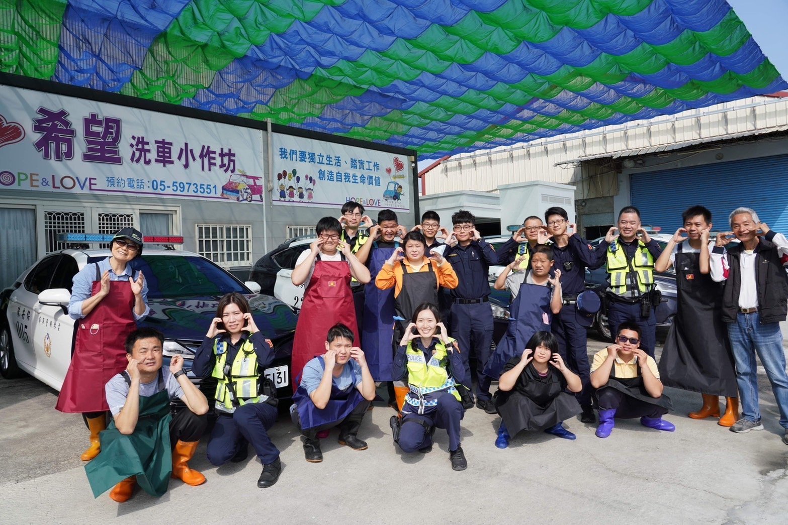 【記者 彭可/雲林報導】身在「公門好修行」,雲林縣警察局除持續加強治安及交通維護工作外,更秉持身為人民保母,愛心不落人後之精神,本月23日上午發起「雲警挺公益,警車洗車趣」活動,出動5部警用巡邏車,到斗南鎮希望工場近期新設立之洗車場,用行動支持弱勢族群朋友,讓「雲林波麗士」的關懷與愛散播出去。