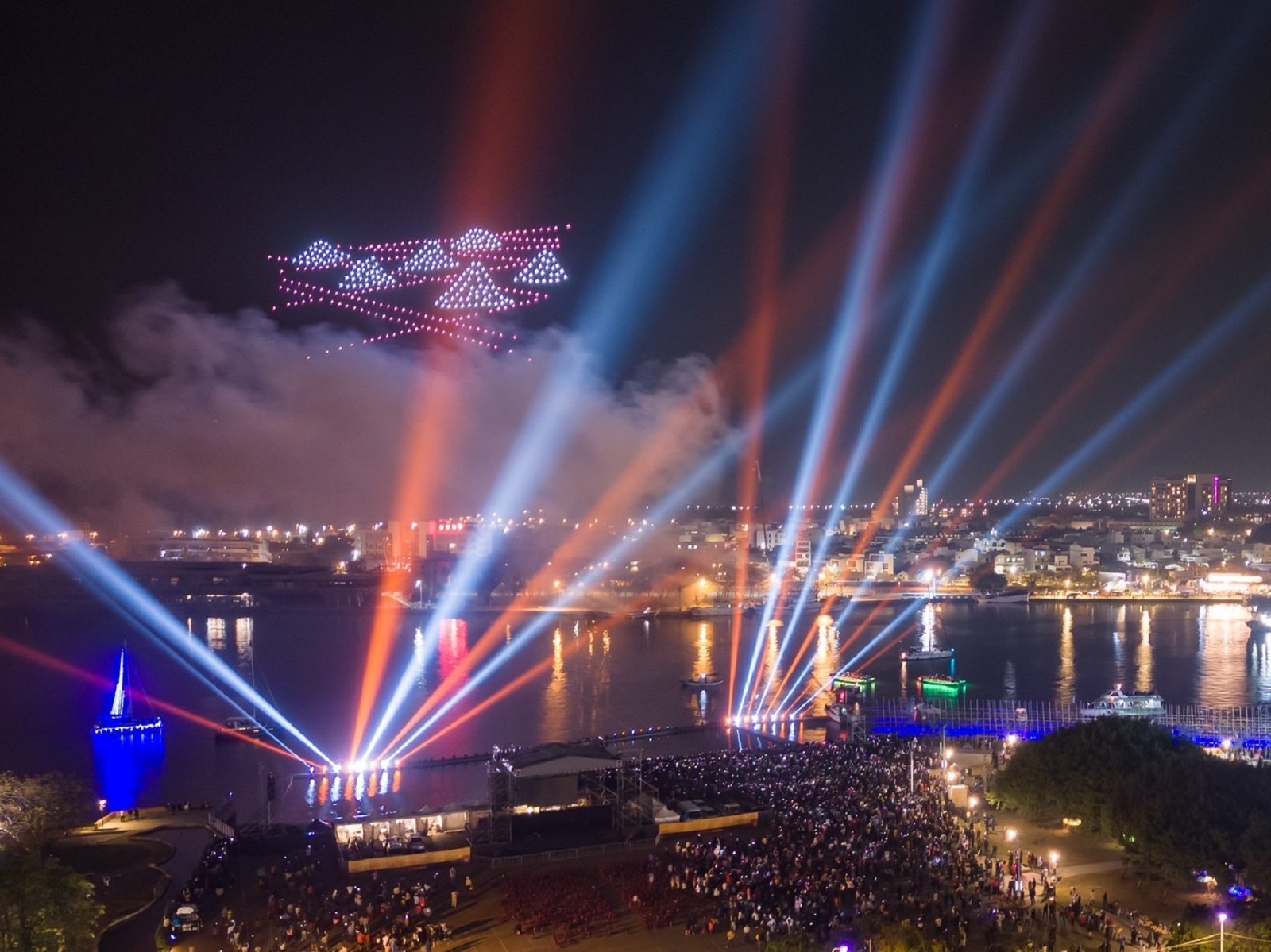 安平燈區假日限定的空中展演結合無人機、煙火、雷射及燈光秀,本周已經是倒數第二周,3/3當天將於19:45演出,現場可見到500台無人機的精彩演出,展演時間12分鐘。建議大家到原1661台灣船園區(安平燈區主舞台)、林默娘公園周邊觀賞。安平區的空中展演其實每場都會有些許不同,3/3當天空中展演的主題是三部曲「夢迴臺南(多元生活)」,故事焦點以現代臺南的多元風貌,是一幅融合傳統和現代的畫卷,空中展演一開始可發現觀賞展演的群眾全都會停下腳步,拿起手機抬頭仰望天空直到展演結束,就知道安平燈區的空中展演多有魅力了。