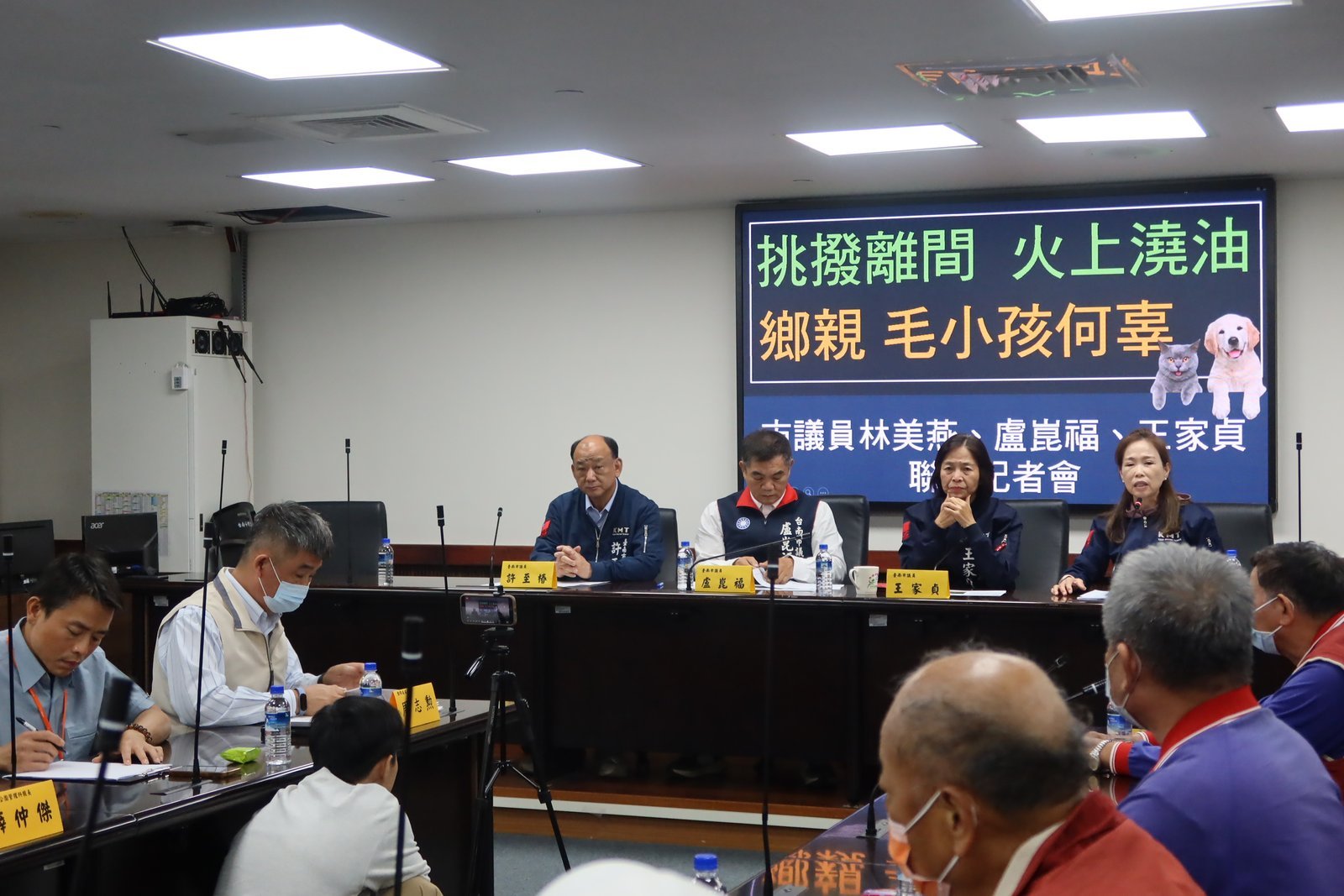 因連日以來有綠營人士在網路指名國民黨等議員誤解寵物友善公園將收容流浪狗,而反對設置,讓林美燕非常生氣,12日邀集藍營議員們在市議會舉行記者會,主題為「挑撥離間、火上澆油、鄉親毛小孩何辜?」。
