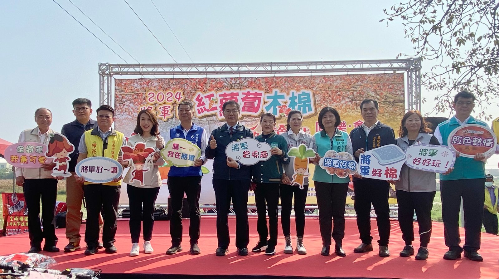 【透傳媒記者杜忠聰/臺南報導】2024將軍紅蘿蔔木棉爭鮮搶豔同樂會,16日在將軍區苓仔寮木棉道熱鬧舉辦,臺南市長黃偉哲表示,將軍區有近2千棵木棉樹,分布於苓仔寮北環道、南1線、南20線、南21線、南24線、南27線等,木棉花開時,形成綿延不盡的橘紅花廊,現正值紅蘿蔔產季,歡迎全國民眾來將軍賞木棉、拔紅蘿蔔,享受將軍區自然美景及農產風貌,也把將軍區優質農產推廣分享,讓更多人認識將軍區胡蘿蔔的好滋味。