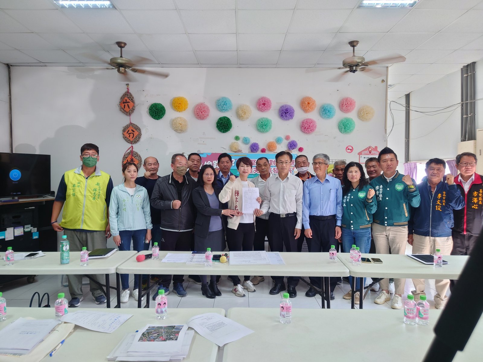 陳亭妃進一步表示,最重要的是「地方民眾完全不知情」,所以寶椿天然氣發電廠公告選址地點附近里民也利用這兩、三天完成「地方堅決反對六分寮設置天然氣發電廠」連署書,今天也由六分里蘇文俊里長、六德里楊駕里長、田寮里楊柳塘里長、胡家里陳彥宏里長、胡厝里陳順龍里長、頂街里洪秉鴻里長、善化農會理事長、總幹事、陳碧玉議員、李偉智議員、李文俊議員共同代表里民正式遞交連署書給經濟部能源署、環境部環境保護司、台糖公司以及市府經發局,讓中央、地方清楚瞭解地方反對的聲音,此案不宜繼續進行,要求經濟部能源署、環境部環境保護司、台糖公司、市府經發局和民眾站在一起,將寶椿天然氣發電廠六分寮興建計畫退件。