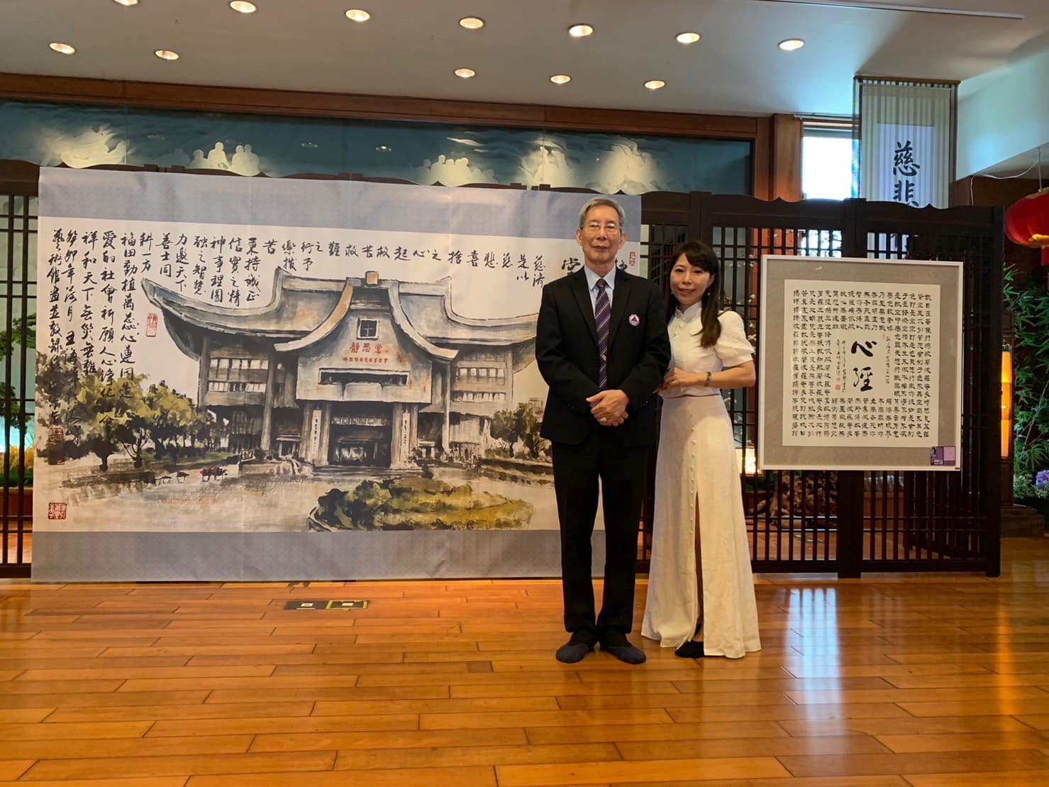 師徒兩人曾於台南市政府、新營文化中心聯手展出,為了此次在慈濟的展出,兩人增添許多作品,更融入「靜思語」,預計展出60幅書畫。歡迎民眾於每天9-16點蒞臨感受。