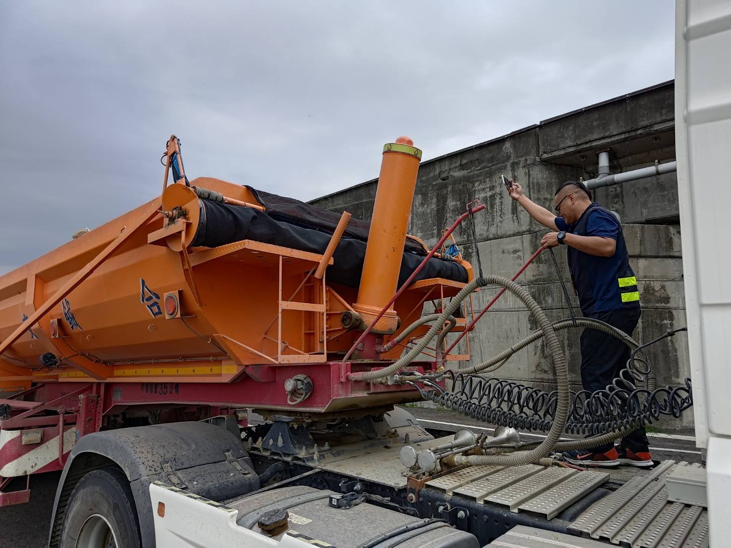【透傳媒記者杜忠聰/臺南報導】為遏止載運廢棄物車輛跨縣市清運棄置的不法行為,台南市環保局執行科技執法攔車專案,以縮時攝影鎖定高風險熱區,24日結合警方鎖定台61線交流道口執行大型車輛攔查專案,共計攔了7輛載運不明廢土,經查為來自嘉義縣八掌溪河川疏浚工程,但司機均未能提供處理地點證明文件且都不願說明廢土去處,已聯絡產源管理單位請其加強查核,以防不法情事,本案全數依法告發,最高可處30萬元以下罰鍰。