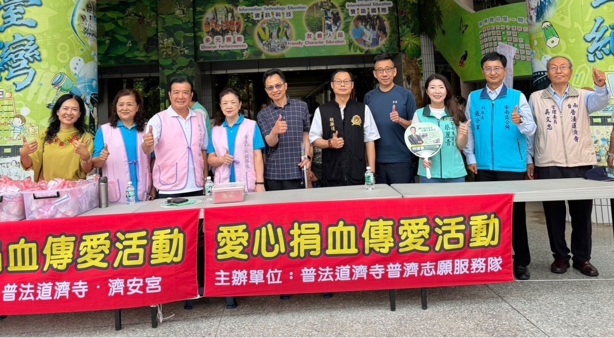 【透傳媒記者杜忠聰/臺南報導】安南區兩間高知名度濟公寺廟—普法道濟寺以及濟安宮,27日首度攜手並結合市議員蔡麗青服務處共同舉辦捐血公益活動,現場還加入曼都時尚髮廊以及太和堂推拿按摩、兒童魔術表演等活動,吸引大批民眾到場參加,熱鬧滾滾,交出捐血好成績!