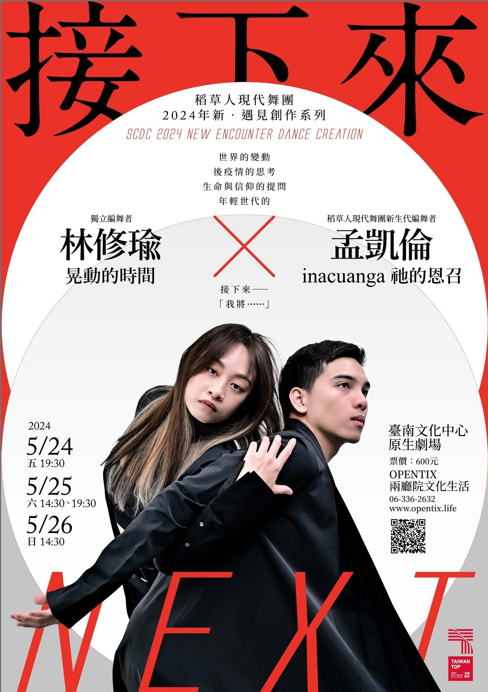 2024年的主題為《接下來──》,將由稻草人舞團的核心舞者孟凱倫和獨立編舞者林修瑜聯手呈現。自2019年加入稻草人舞團的孟凱倫,將與林修瑜以雙舞作的形式,分上下半場發表各自的獨特創作風格與理念。這兩位年輕的編舞者都從人們熟悉的日常生活中汲取靈感,透過對自我生命時間的省思和對信仰的探究,呈現出各自世代所關注的創作議題與內涵。