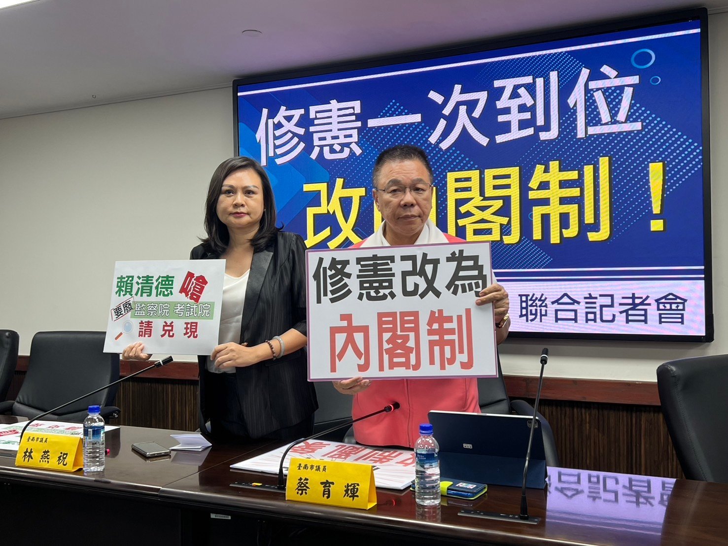 曾嗆廢考監院,蔡育輝、林燕祝請他兌現,修憲一次到位,改內閣制
