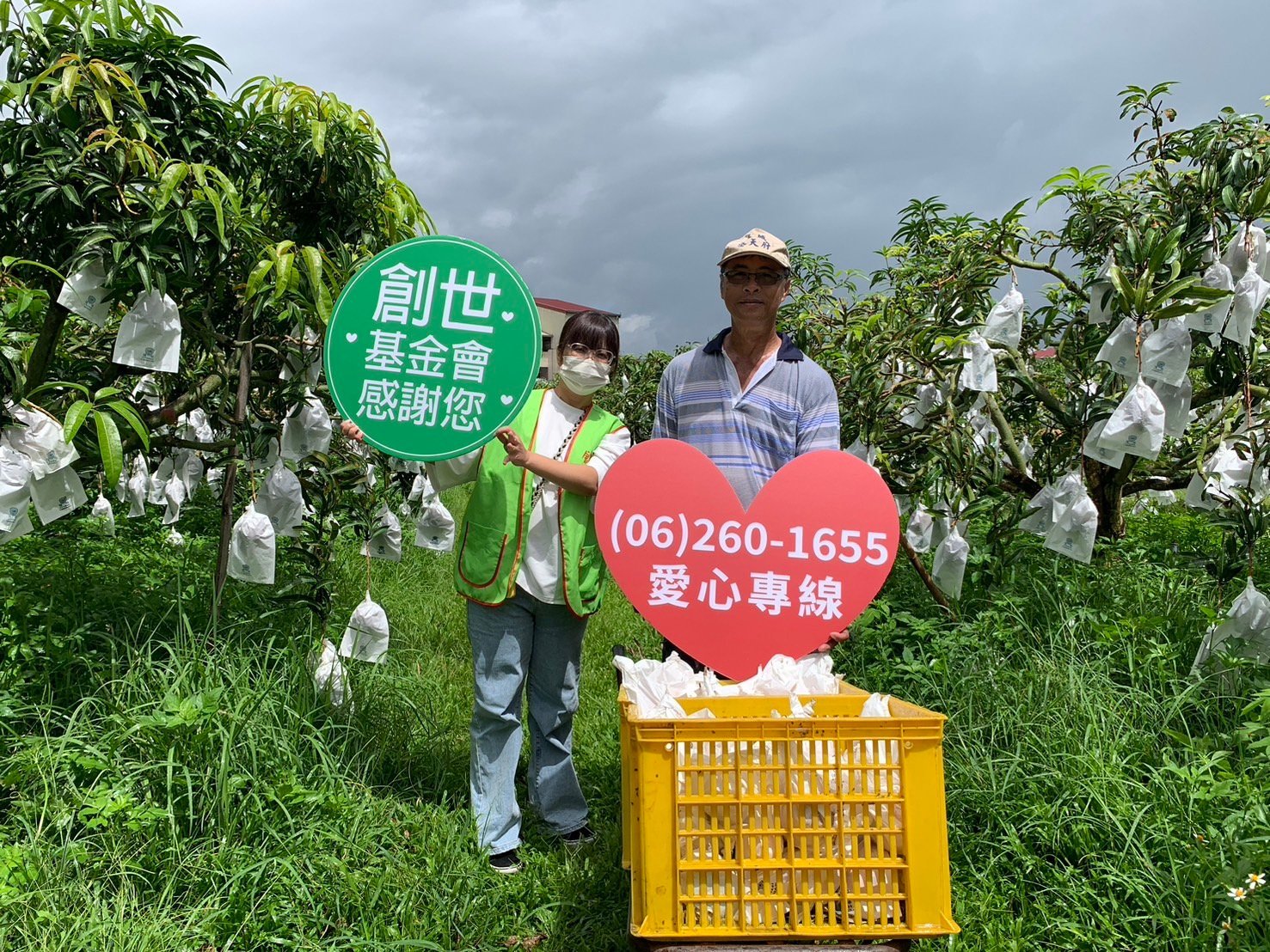 「小崇ㄉ果園」果農李裕崇因曾照顧中風臥床父親8年之久,深刻體會照顧者的辛勞與重擔,從108年起連續6年都捐贈愛文芒果禮盒給創世義賣,即使在新冠疫情期間,果園收入受影響,也不曾間斷。李裕崇表示:「照顧臥床者是一條長遠的路,我走過,所以知道很辛苦。」「小崇ㄉ果園」採用草生栽培,不噴灑除草劑,使用人工除草與草共生的方式,友善土地與環境,栽種出無毒的愛文芒果。