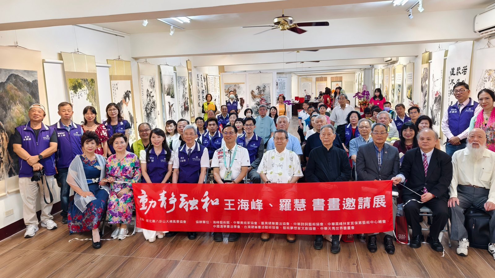 張世良理事長表示,「動靜融合、藝耀八方」的藝術展覽共展出60幅精選佳作,其中王海峰院長珍品40幅,羅慧老師佳作20幅,策展人許旗成說,動靜融合畫作展覽,每次不同的呈現都會給參觀者不同的感受,書畫藝術講究的「形與勢」、透過王海峰院長與羅慧老師的筆墨展現出大自然「動與靜」之絕美!王海峰院長執筆揮灑「動之機、靜之氣」融合大道與自然!羅慧老師作品的貓兒系列佳作,需要「動中靜觀」觀點與視角方能有所領悟!
