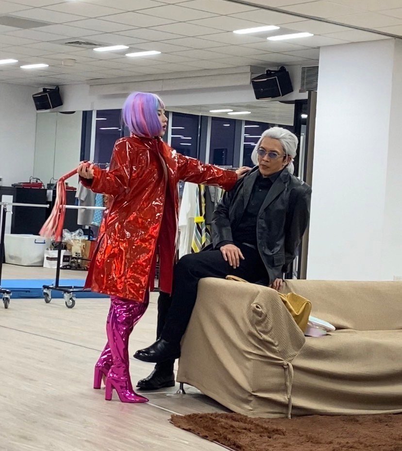 在劇中飾演性愛顧問的盧以恩,隨身包包內竟充滿SM道具?還跟黃尚禾、凱爾大玩三人行?以恩笑著說,別誤會!SM不是她個人喜好,而是劇團準備的道具啦!「其實我也是第一次看到皮鞭,本來一開始劇團準備一條比我身體還長的鞭子,根本甩不起來,後來換成短的,尚禾哥跟凱爾哥還輪流拿著皮鞭示範給我看,要怎麼演出妖嬈的性愛顧問。」因為剛開始導演找我演這個角色時心裡也有很多小劇場,心裡想:「哇!我真的長大了,可以演這種角色了。」