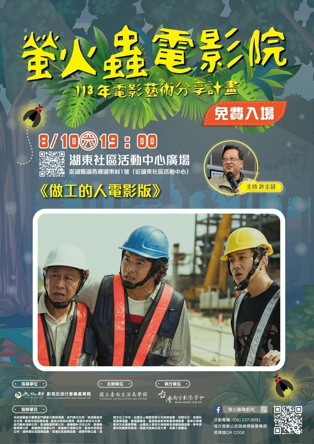 「螢火蟲電影院」將優質的國產電影推廣至臺灣各地的鄉鎮社區,讓更多國人能夠欣賞到國內電影製作的精彩,不僅提供了一個觀賞電影的機會,也促進了社區間的交流與互動,展現國片的多樣性和豐富性。活動全程免費,歡迎一同來參與盛夏視聽饗宴,相關場次及活動最新訊息請上國立臺南生活美學館