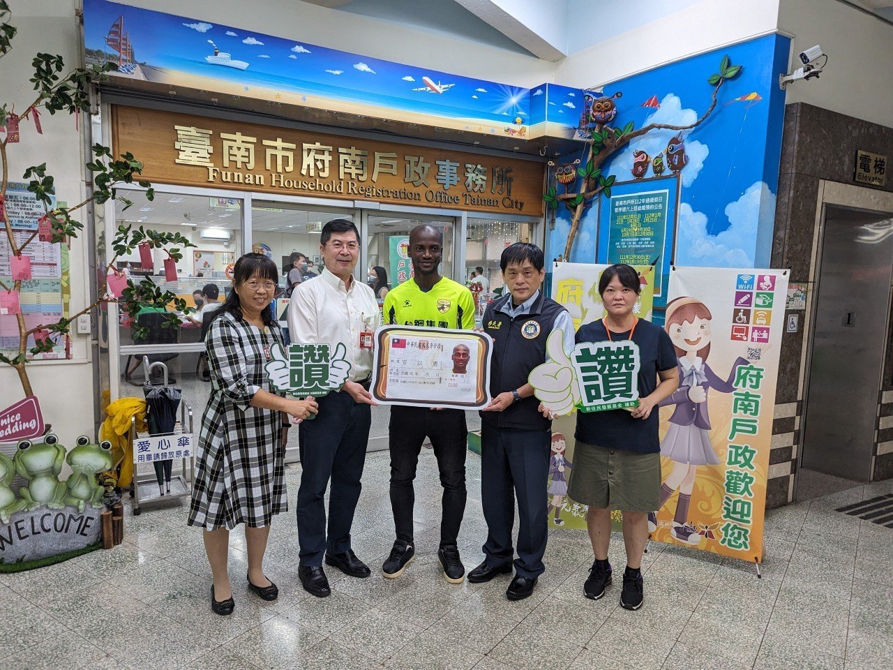 象牙海岸歸化球員安以恩「雙喜臨門」 臺南移民署與府南戶所同祝賀