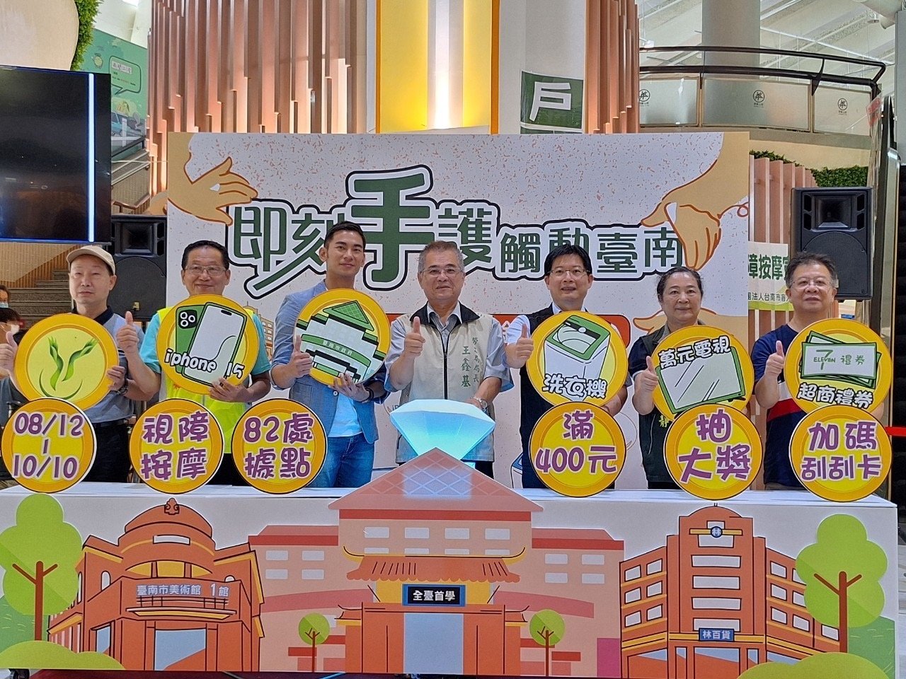 就業促進科長沈淑敏表示長期輔導培訓視障按摩師迄今已達265分別在台南市93家按摩據點含按摩小站提供服務台南是被票選最值得造訪的城市之一,9月-10陸續迎接中秋節、教師節及雙十國慶等特別節日來台南玩的遊客與在地人歡迎前往按摩據點紓壓輕鬆一下,以實際消費支持鼓勵視障按摩師,讓他們專業技術能夠大展身手即日起民眾只要1010前至南市指定的82視障按摩據點滿400元以上(每人單次消費限領一次)就能夠得到摸彩券及加碼刮刮卡一張獎項豐富有最受矚目iPhone15 Plus 1名、43LED電視及變頻直立式洗衣機各1名、一千元禮券30、五百元禮券100以及加碼的電子禮券2000份多項好禮。