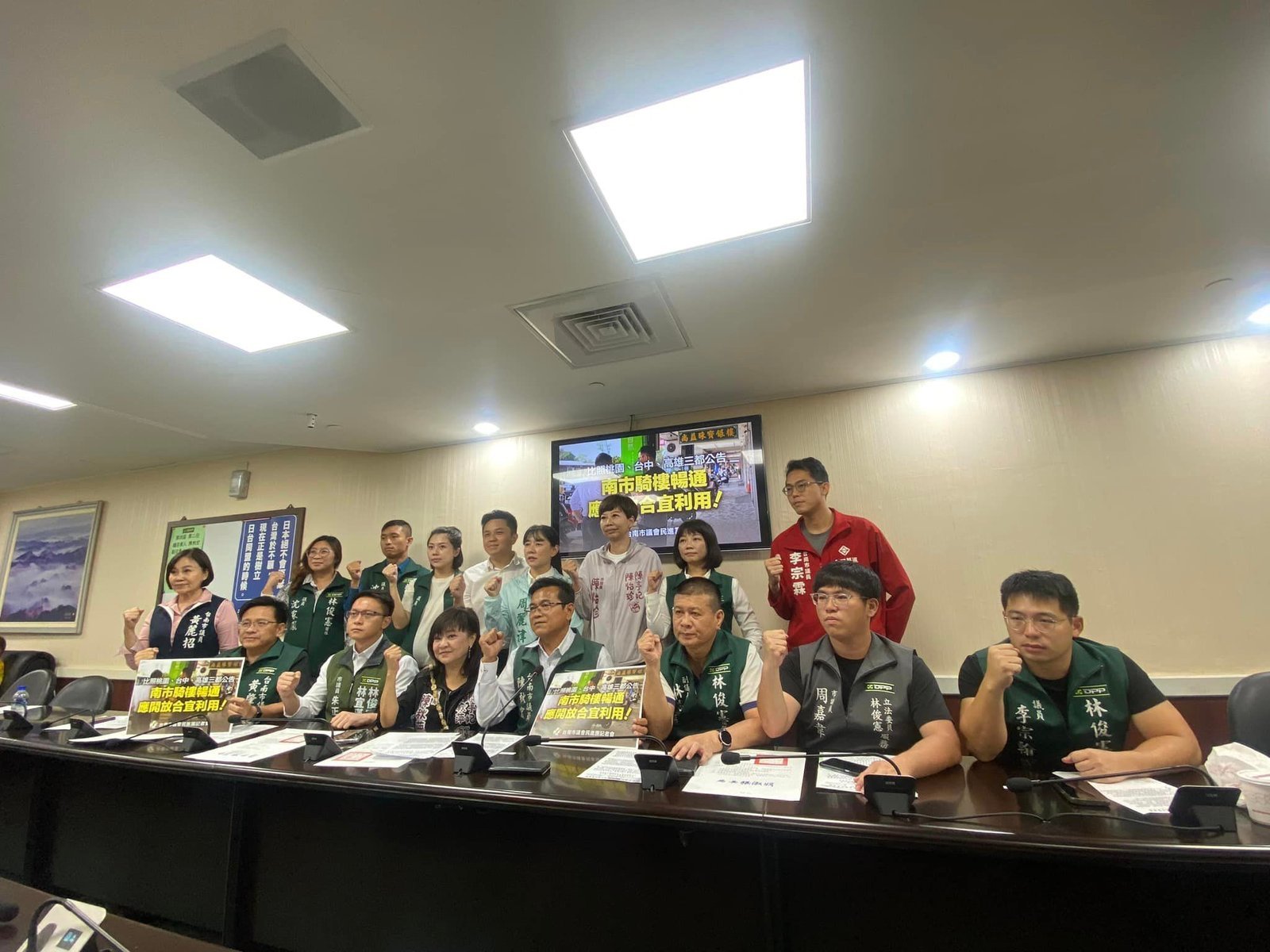 民進黨團指出,台南也曾在2016年6月1日局處協調會做成決議並正式函文警察、交通及工務等局處,要求1.5米綠線在不妨礙行人通行的情況下免予取