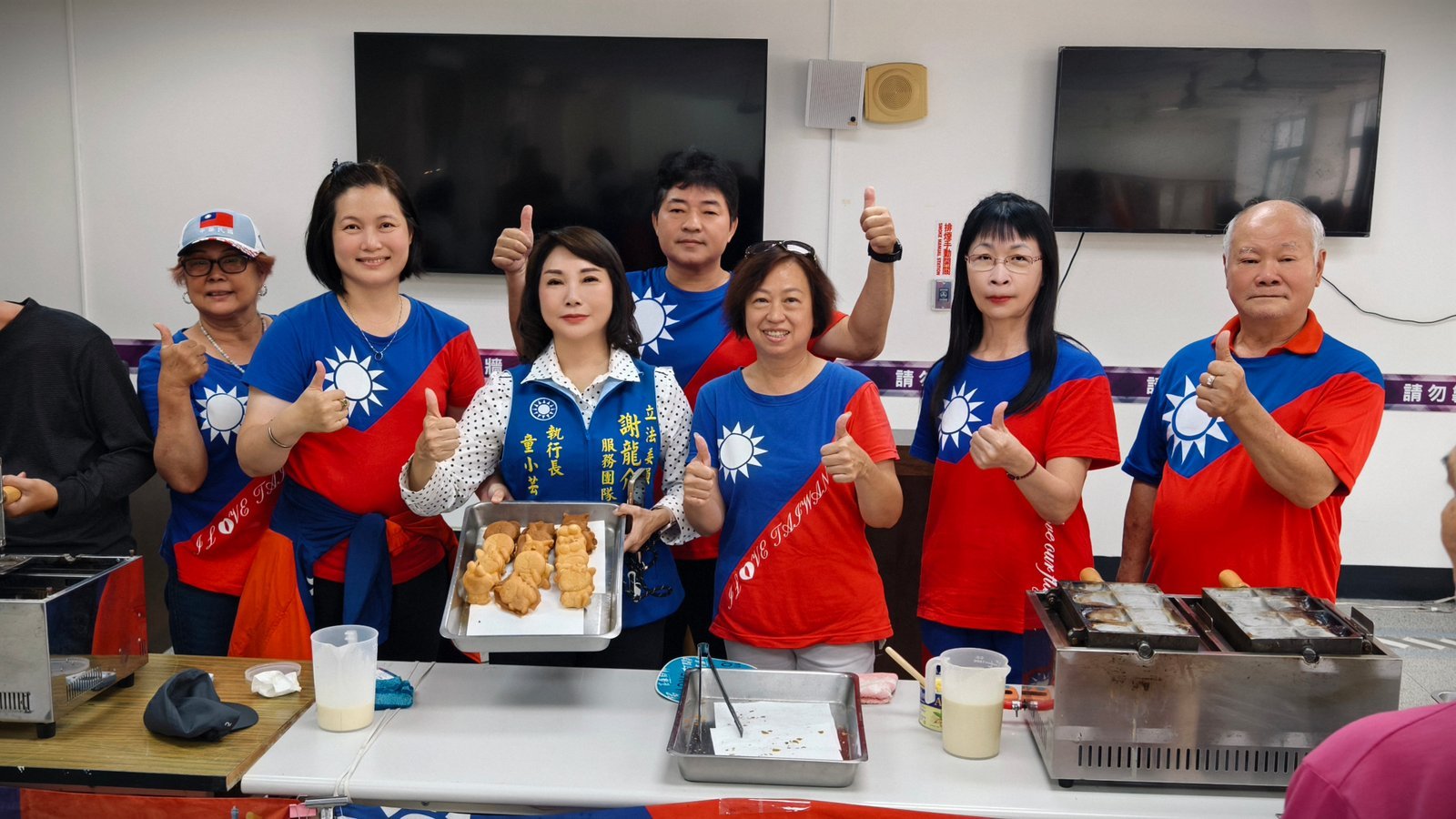 國旗裝圓夢計畫團隊成員們也展現了滿滿的熱情,他們不僅負責烘焙雞蛋糕,還與院民們互動、聊天,讓現場充滿溫馨的氣氛。