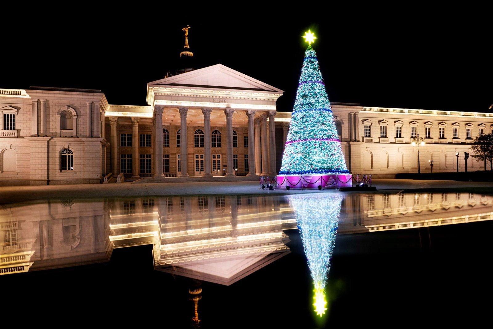 每年備受矚目的「幸福聖誕樹」即日起率先登場為活動暖身,此次主打西洋傳統節慶的經典氛圍,樹身以綠色樹體搭配金、紅、藍三色彩球,堆疊出繽紛層次感,底座則以紅色、金色幾何圖形交錯,帶出華麗貴氣的喜悅情境,搭配博物館的西洋建築風格,預計成為拍照打卡熱點。幸福聖誕樹自即日起展出至明年1/7止,每日17:30至22:00點燈。「聖誕週末」夜晚將舉行聖誕燈光秀,展現與白天截然不同的絢麗景致。