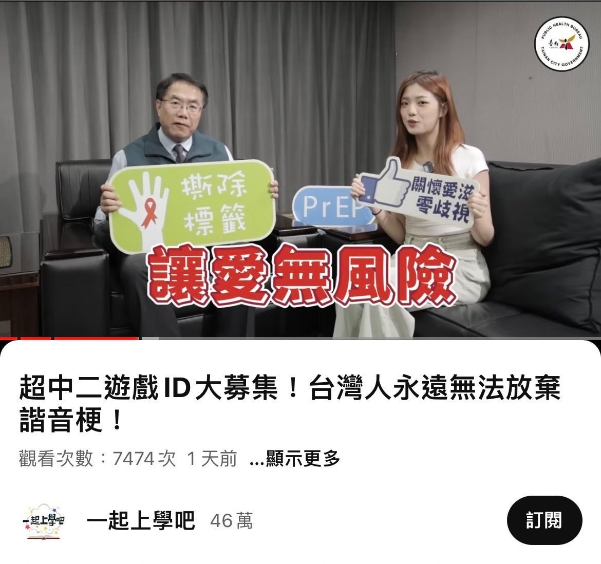 【透傳媒記者廖蓓慈/臺南報導】為響應113年世界愛滋日,臺南市政府衛生局以「Take The Rights Path」為主題,傳達尊重與包容的重要價值,致力於打造愛滋友善城市。市長黃偉哲與YouTube頻道「一起上學吧」共同為世界愛滋日合體拍攝,宣導影片已於113年11月29日於該頻道首播,影片上架後已逾7千觀看次數,希望透過「一起上學吧」在學生族群中的號召力,讓更多年輕族群了解與關懷愛滋防治議題!市長與該頻道成員羅念攜手向市民倡導:「關懷接納、愛不可怕」、「痘陣篩檢,愛無風險」! 共同呼籲市民朋友們,以行動減少歧視、關懷愛滋防治,接納每一位身處這個議題的人,讓臺南市成為溫馨、友善的城市。影片詳見:https://youtu.be/bRYLOkZ6jkY
