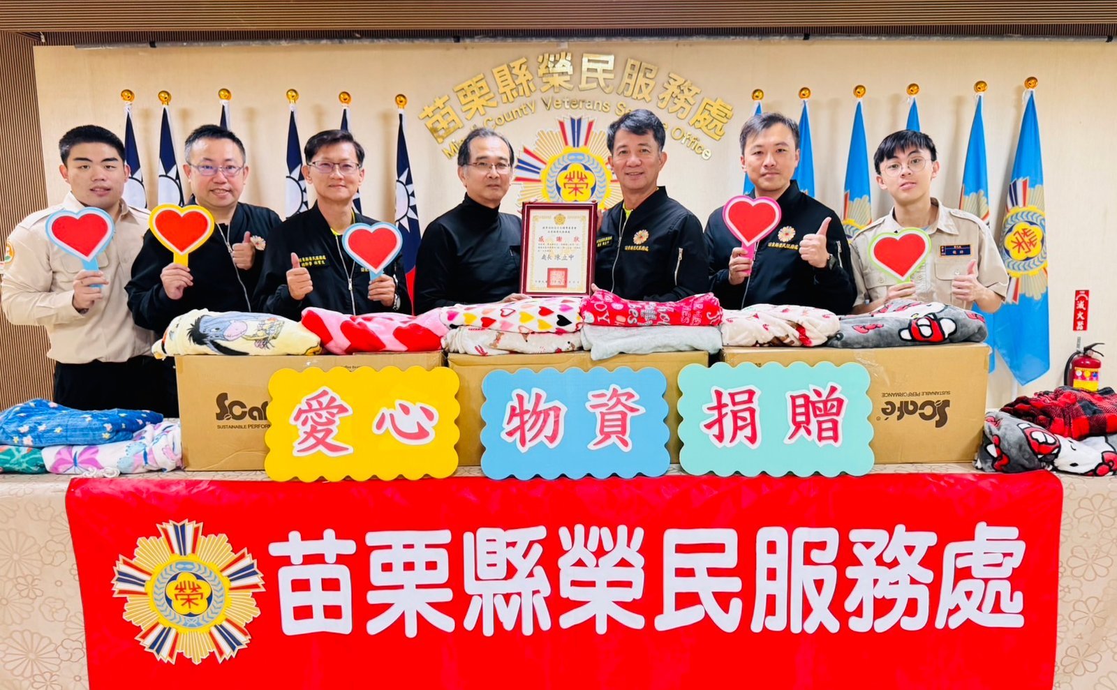 苗栗縣榮服處感謝退軍社團詹益雄副理事長捐贈冬被