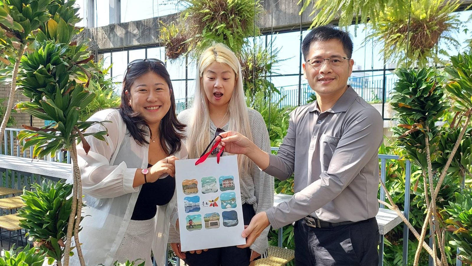 【透傳媒記者廖蓓慈/臺南報導】臺南是一座富含歷史文化及美食等多種元素的觀光城市,近年臺南市政府觀旅局除了辦理多樣活動吸引旅客至臺南旅遊,亦積極參加多國海外旅展行銷臺南觀光,本次特別感謝臺南市旅行商業同業公會邀請韓國網紅李花(꽃언니)走訪臺南,臺南市政府觀光旅遊局鄭道立副局長代表致贈臺南鳳梨酥及臺南古蹟伴手禮讓李花品嚐臺南風味,期盼透過李花的介紹,吸引更多韓國旅客體驗臺南的美好與豐富的美食小吃文化。
