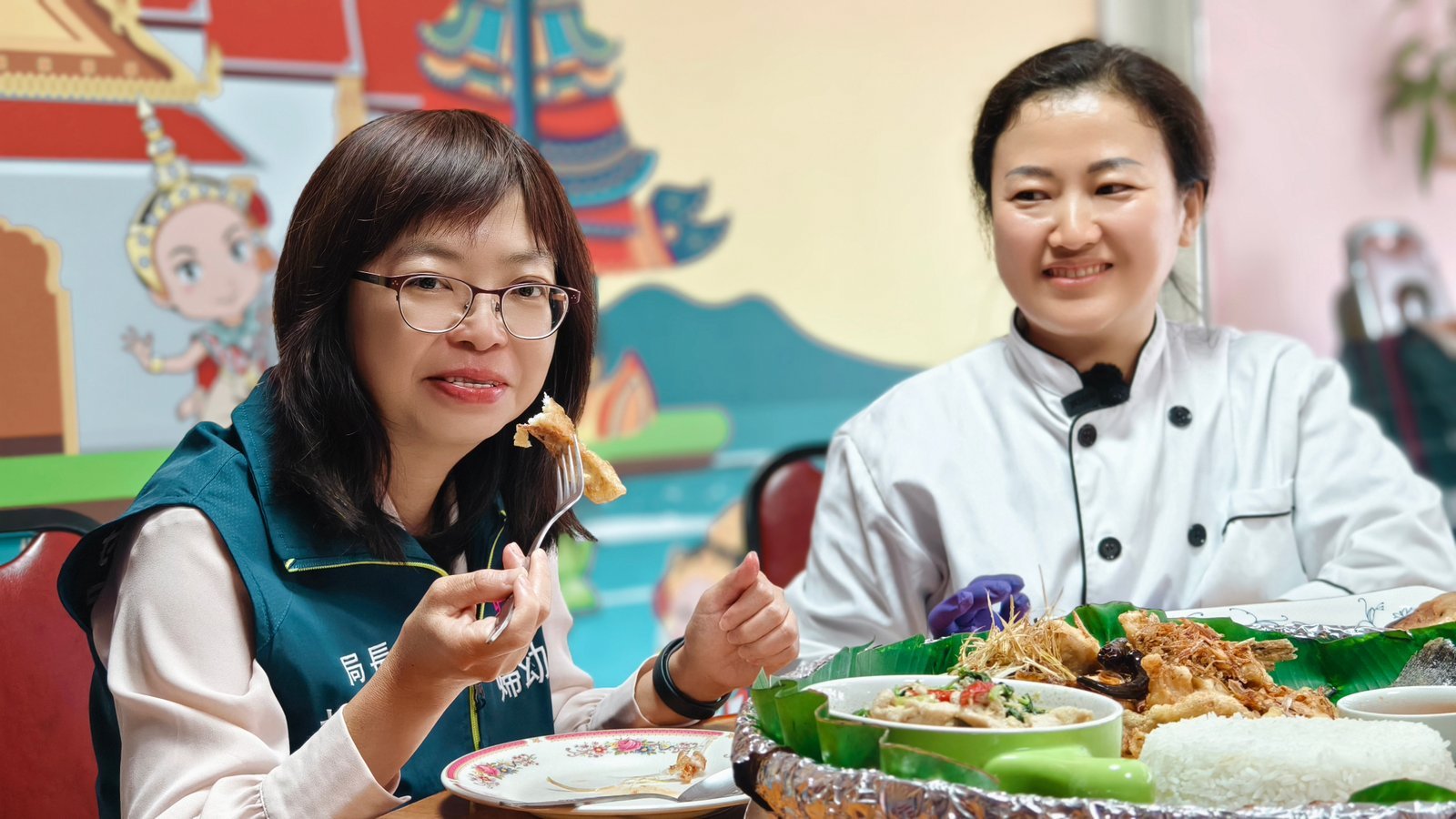 桃園市婦幼發展局局長杜慈容品嘗泰式料理,展現對新住民的支持