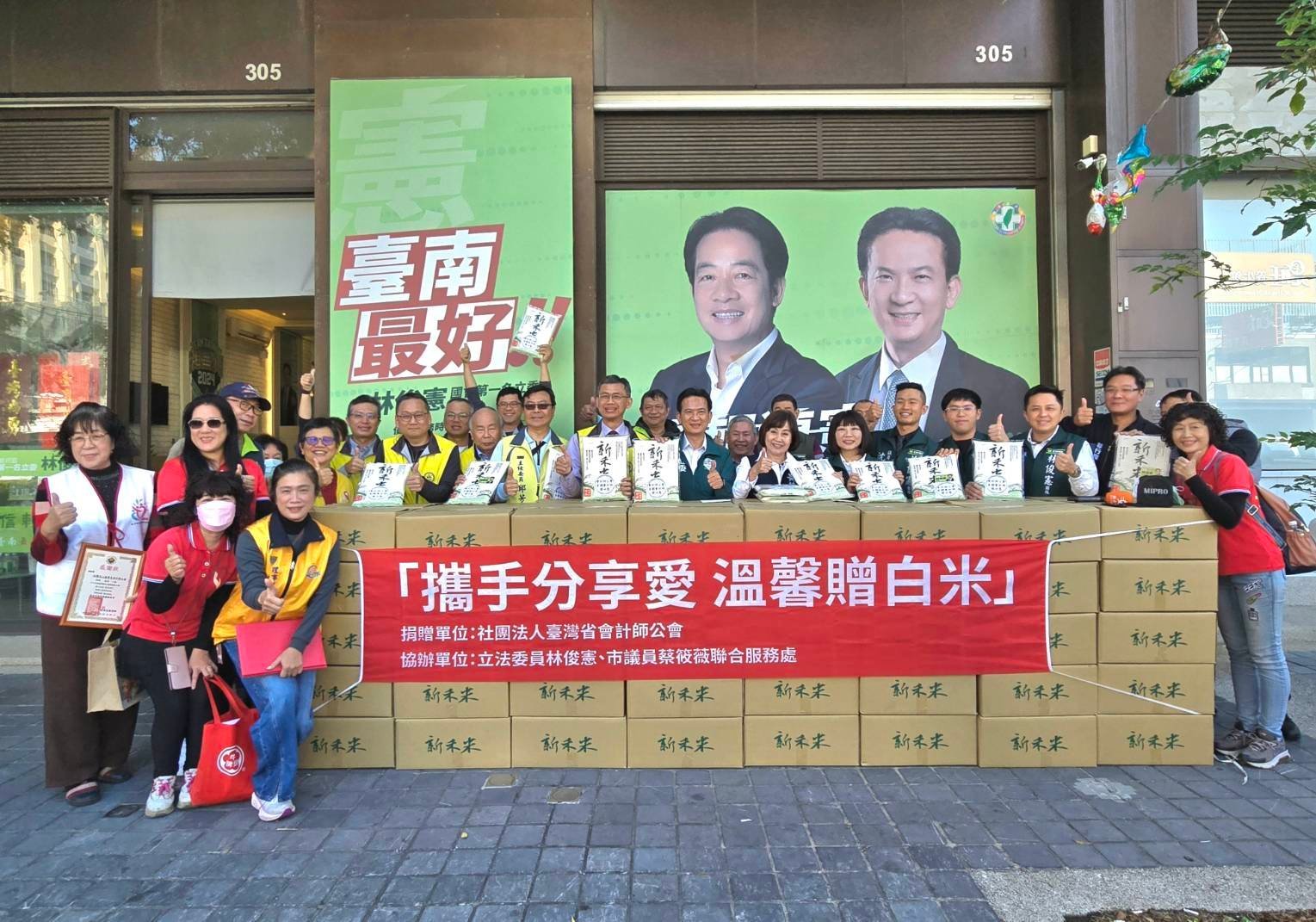 立委林俊憲攜手會計師公會,贈弱勢族群2500公斤白米