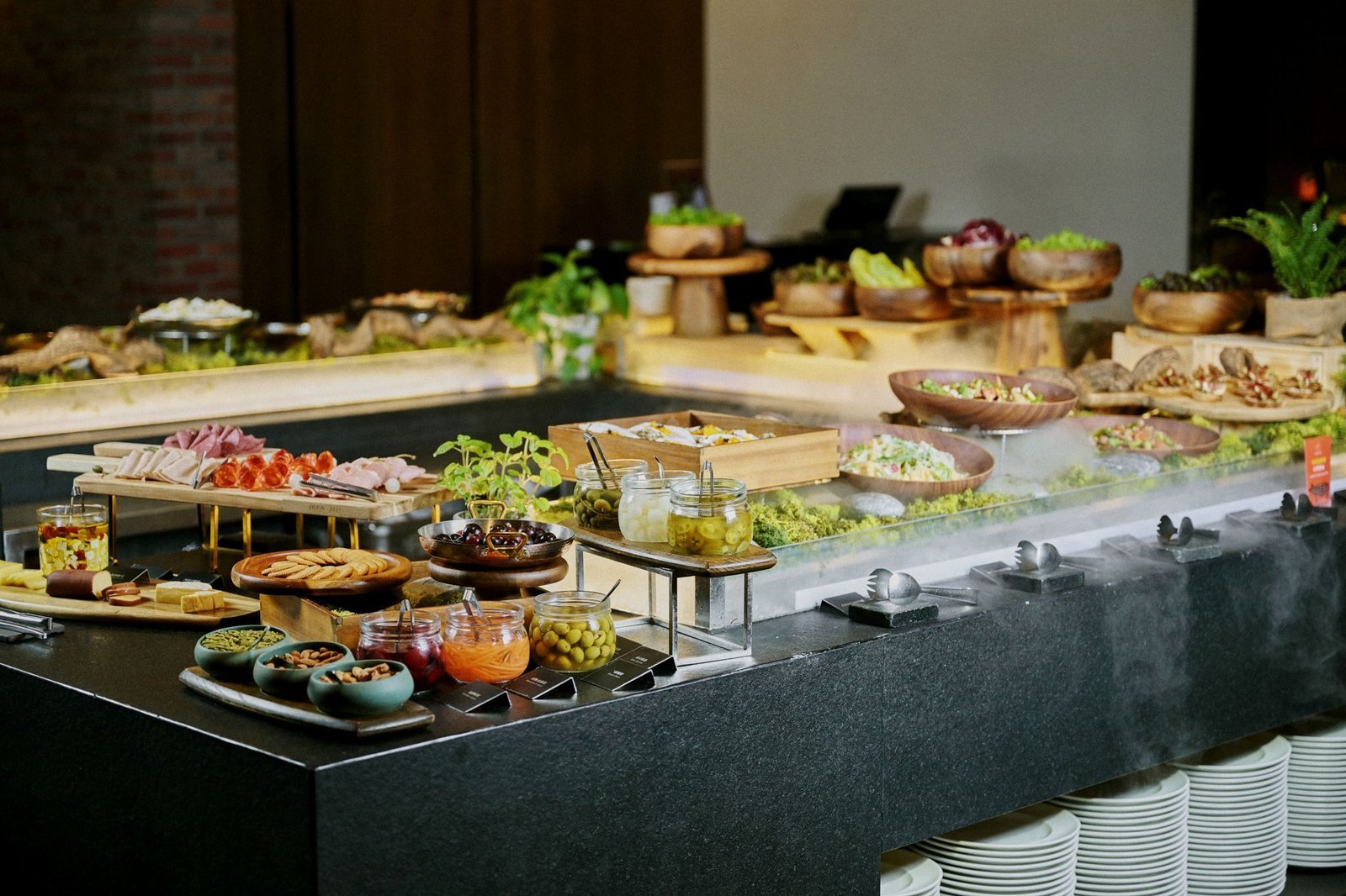 除了推出新品,ROBIN’S日風和食鐵板燒主廚鄭安宏以義大利南部聖誕夜傳統「七魚宴」為靈感,將這一習俗匯聚至季節鮮味的海鮮拼盤,主廚嚴選章魚、干貝、烏魚子、鮑魚、寒鰤、蝦子、花枝等七款海味,透過醃漬、風乾、甘辛煮、鹽蒸等多元烹飪方式,細膩呈現極上饗宴,主餐部分另可選擇日本熊本縣A5金牌黑樺和牛、美國頂級老饕牛肉或是台灣在地永續牛肉。至於大受歡迎的ROBIN’S吃到飽沙拉吧,也隨著本季新品上式正式回歸於制式菜單中,以新鮮有機蔬菜、海鮮冷盤打造的精緻沙拉吧,一直是食客於主餐前的開胃儀式,餐後再享用繽紛手工法式甜品,用餐體驗無痛升級,套餐每人2,380元起。