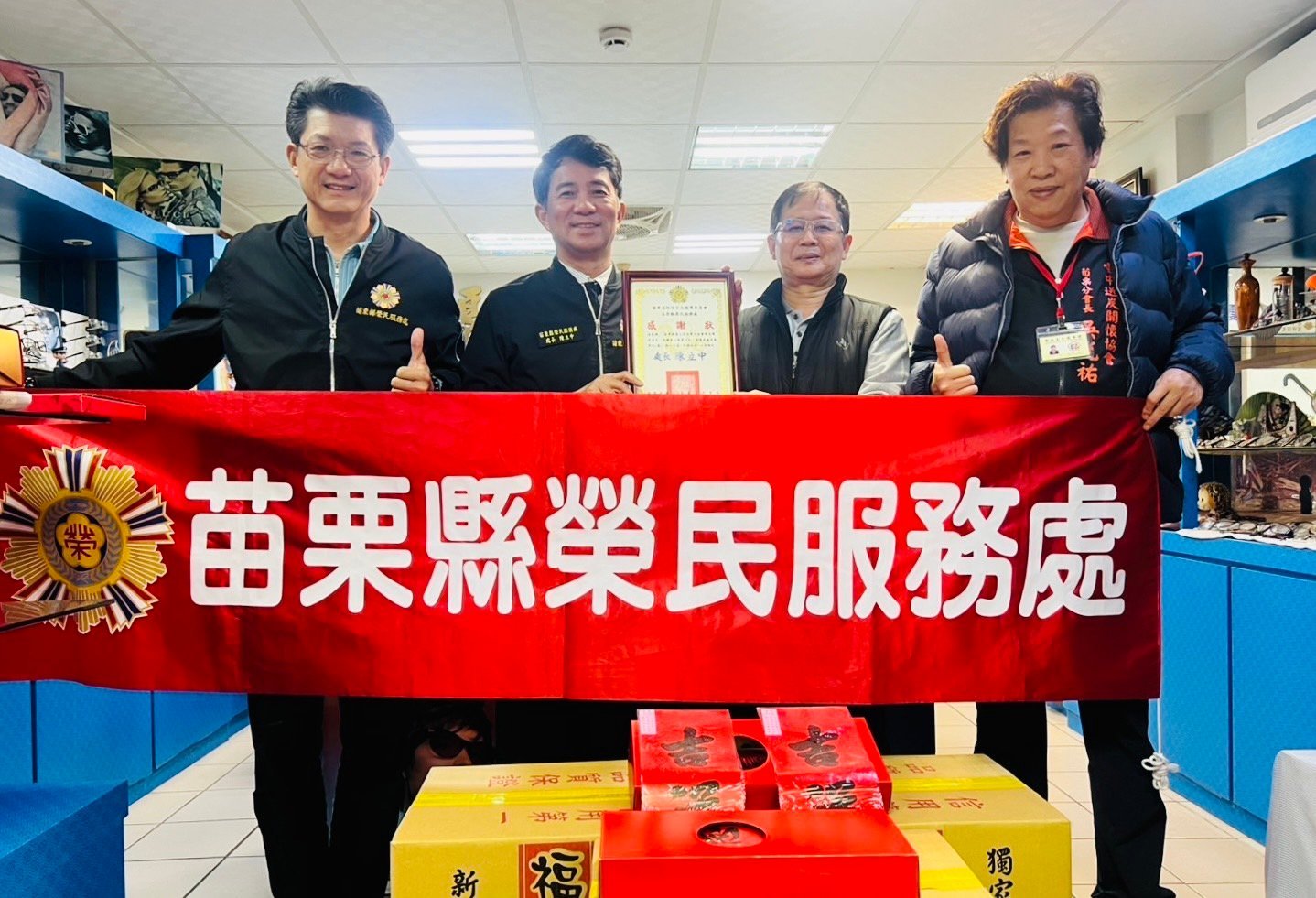 苗栗榮服處感謝蓬山退伍軍人協會捐贈春節物資