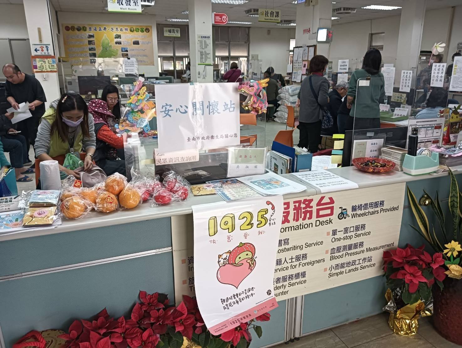另因地震,許多受災民眾因房屋倒塌財產損失而情緒低落,故衛生局以災民為中心,於第一天隨即進入災區,提供災民心理關懷及輔導,因為早期確認高危險群,並適當轉介進行心理輔導是相當重要的一環。截至 1 月 22 日止,衛生局及各區心理衛生中心共投入 20 名心理專業人員、關懷災民 50 人次,包括玉井區 33 人次及楠西區 17 人次。因災民於剛受災時未必會求助精神科,因此,衛生局主動結合社區心理衛生中心心理師、心輔員、關懷訪視員及心衛社工等專業人員於地震後,每天進入災區,針對玉井區公所及楠西區老人文康中心收容所災民及受傷受災戶,以家戶式進行個別性服務,陪伴傾聽及提供紓壓服務,如按摩、深呼吸、紓壓花茶等服務,上列服務不分假日將服務至 1 月 28日除夕當日為止。
