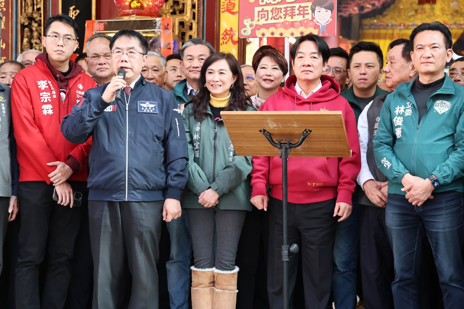 今日賴總統參拜廟宇除首廟天壇,還有西港慶安宮、新營太子宮等,包括立委林宜瑾、林俊憲、陳亭妃、王定宇及市議員郭鴻儀、李啟維、沈震東、黃肇輝、李宗霖、蔡筱薇、陳怡珍也到場祝福。