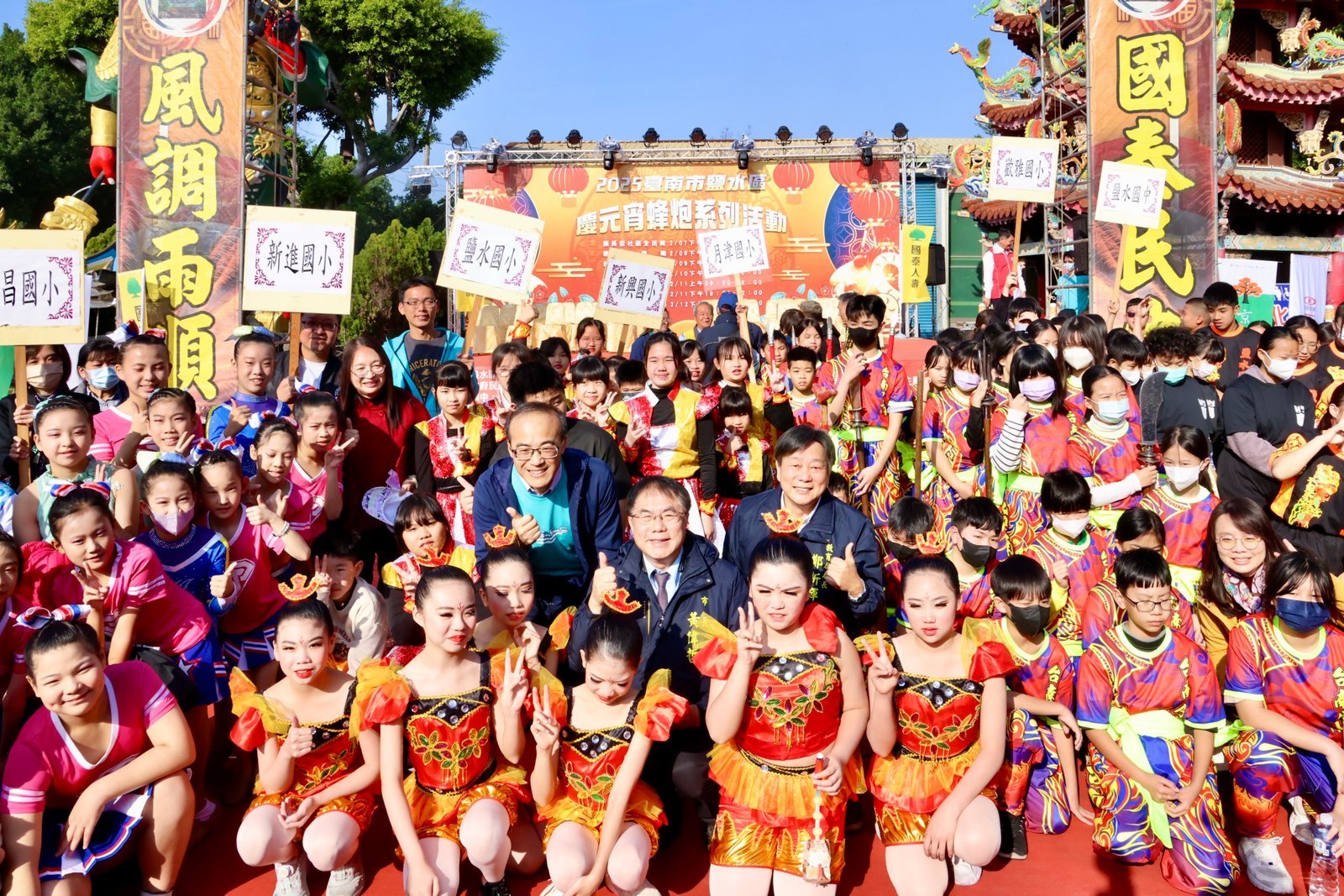 【透傳媒記者杜忠聰/臺南報導】名列世界三大民俗慶典,享有「北天燈‧南蜂炮」美名的臺南鹽水蜂炮活動,11日上午隆重舉行啟炮儀式,將展開為期2天2夜的蜂炮輦轎遶境活動,並以花車遊行與民眾互動同歡。市長黃偉哲親臨主持為活動揭開序幕,邀請大家一起來鹽水體驗,感受蜂炮所帶來的魅力與震撼,市議員王宣貿、沈家鳳到場共襄盛舉。南市推廣民俗技藝有成的31所績優學校,也配合蜂炮活動自上午9時到下午4時於鹽水武廟前廣場帶來「大臺南囝仔仙拚仙」精采表演,黃偉哲特別頒贈感謝狀嘉勉表演師生。