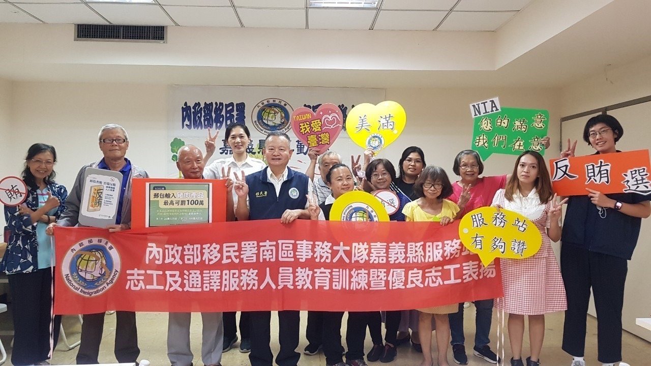 為有效提升志工與通譯人員專業知能及服務品質,以及嘉勉服務優良志工人員,移民署南區事務大隊嘉義縣服務站於8月24日舉辦「112年度志工及通譯教育訓練暨優良志工表揚活動」,安排一系列研習課程,透過經驗交流與心得分享,提升志工與通譯服務知能與品質,打造優質服務團隊。最後由嘉義縣服務站主任林炳煌頒發感謝狀,表揚去(111)年度優良志工陳美瑾,感謝陳美瑾及其他志工和通譯人員無私的奉獻與服務。