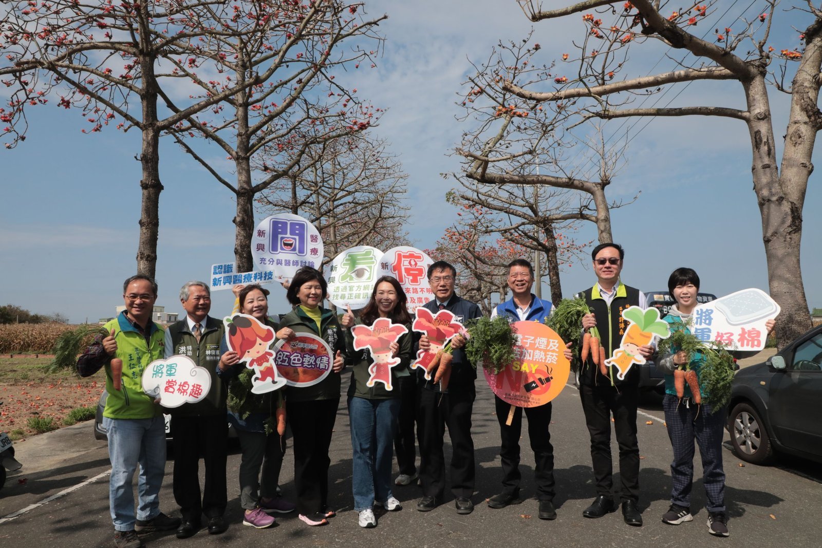 【透傳媒記者杜忠聰/臺南報導】每年農曆春節過後正值紅蘿蔔的採收季,3月也適逢木棉花盛開,將軍區公所29日在苓仔寮木棉道舉辦「2025將軍區紅蘿蔔木棉爭鮮搶豔同樂會」,打造地方特產與鄉村風光的雙重盛會,臺南市長黃偉哲擔任活動代言人,與民眾一同體驗拔蘿蔔的樂趣。市議員方一峰、謝舒凡、蔡蘇秋金、陳昆和也到場共襄盛舉。